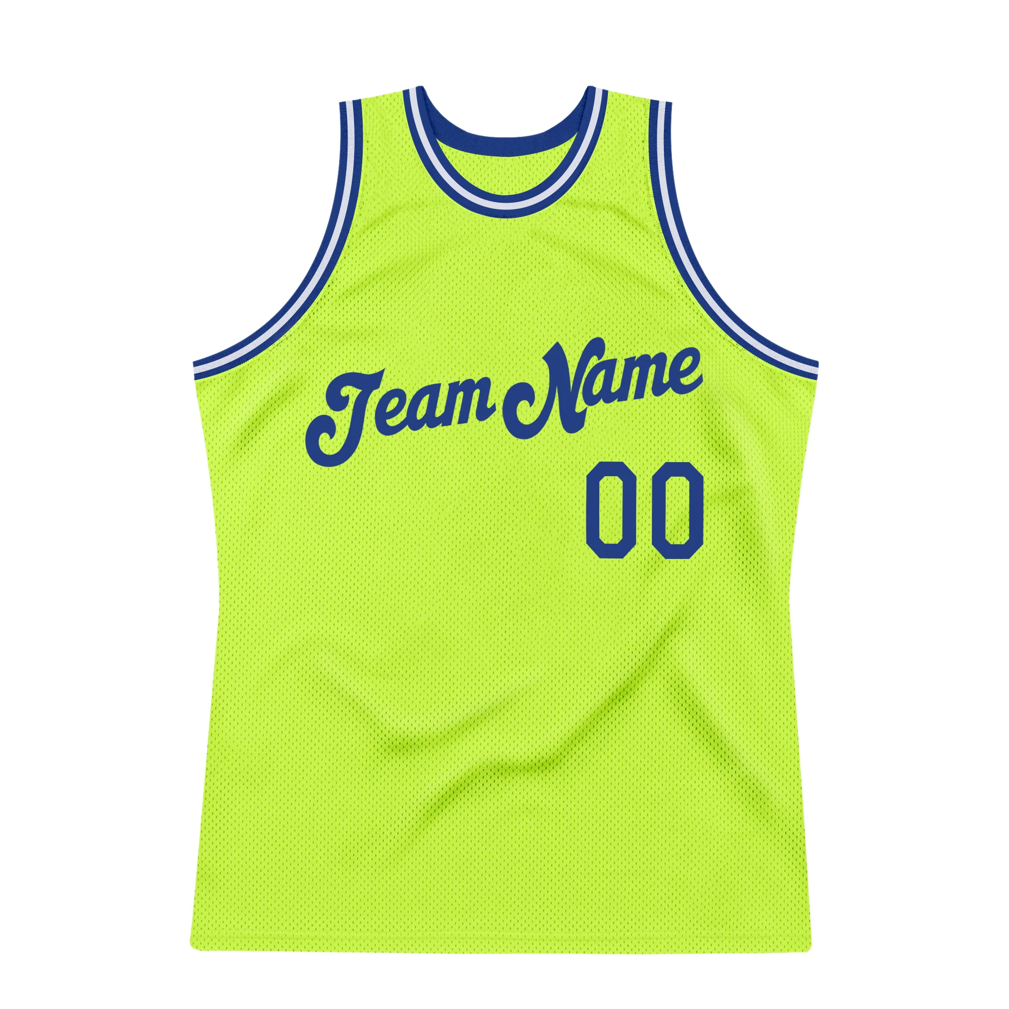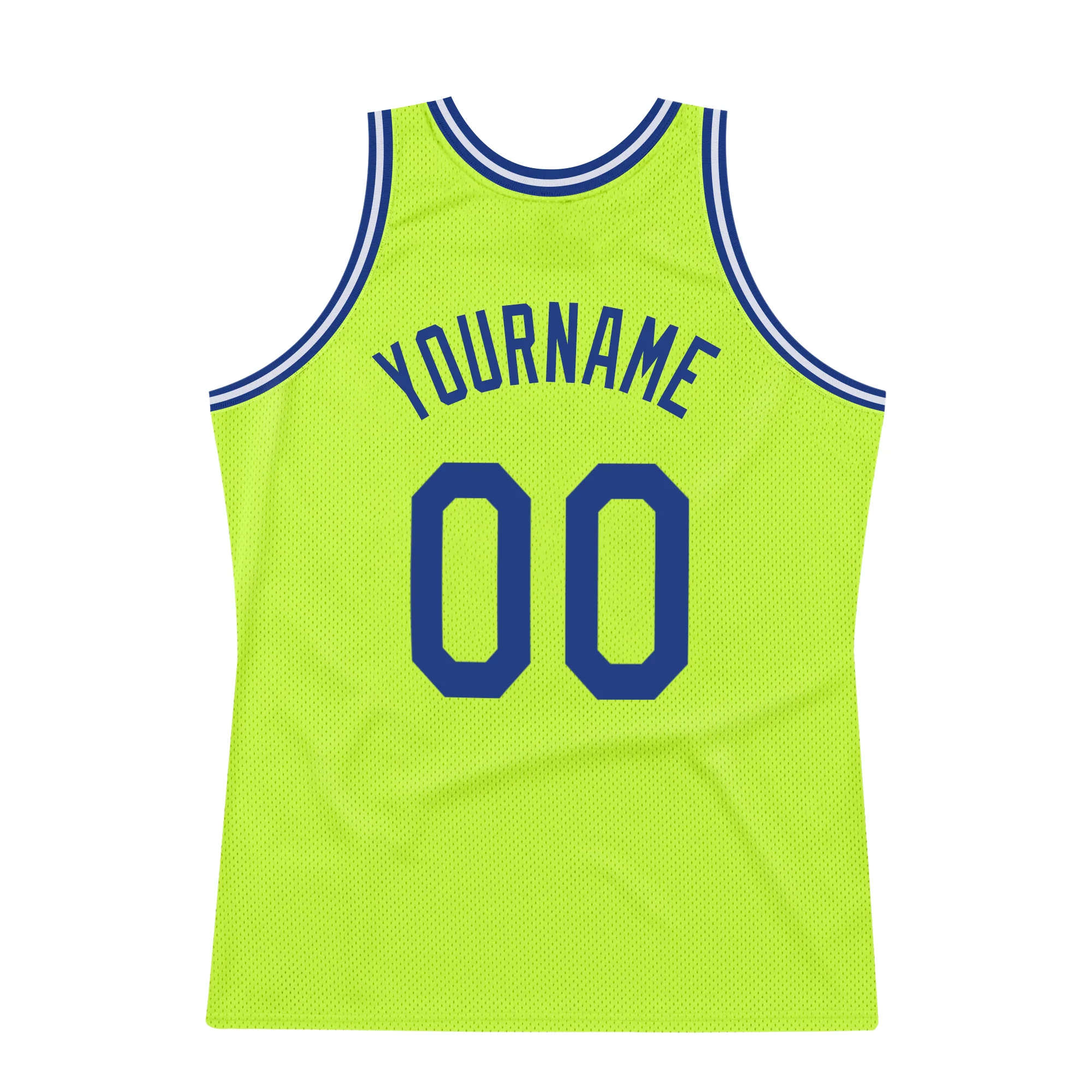 Custom Neon Green Royal-White Authentic Throwback Basketball Jersey