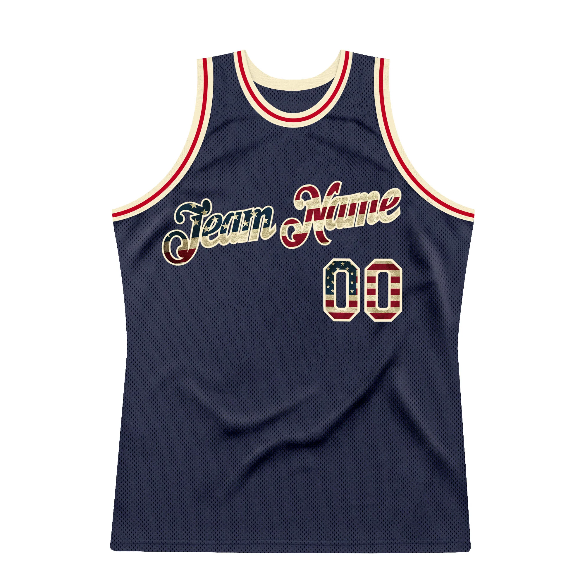 Custom Navy Vintage USA Flag-Cream Authentic Throwback Basketball Jersey