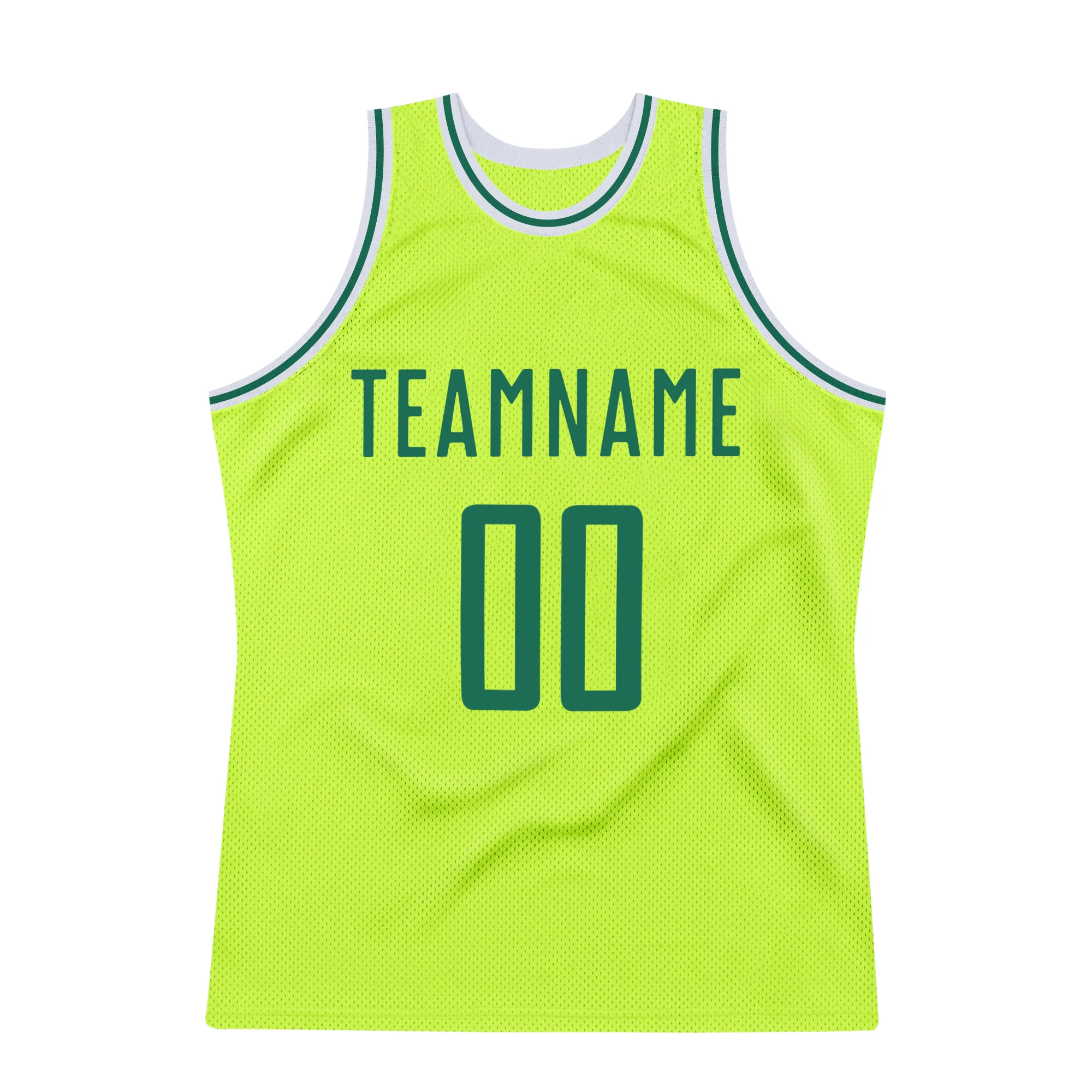 Custom Neon Green Kelly Green-White Authentic Throwback Basketball Jersey