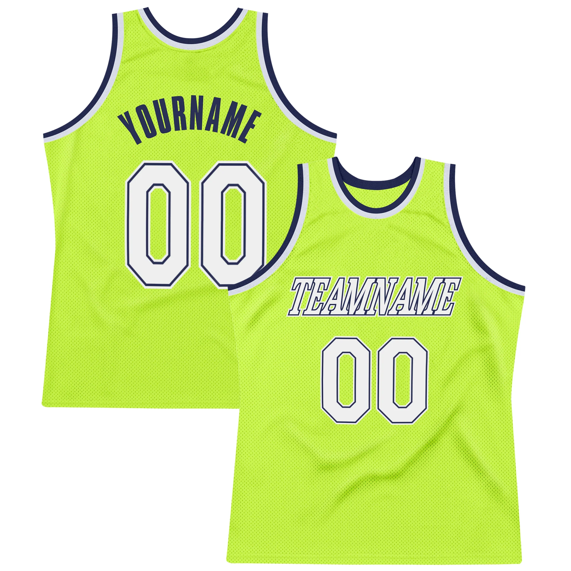 Custom Neon Green White-Navy Authentic Throwback Basketball Jersey