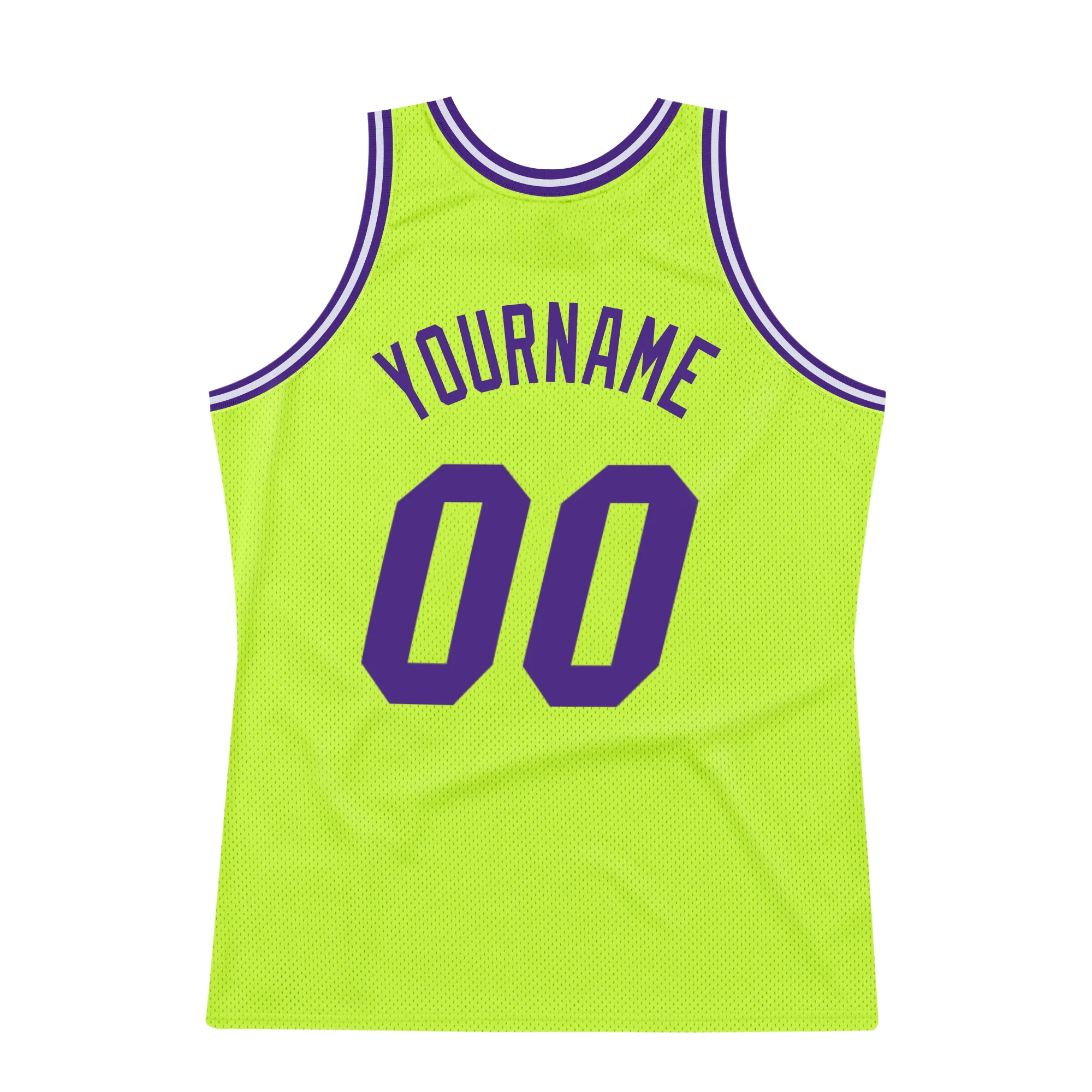Custom Neon Green Purple-White Authentic Throwback Basketball Jersey