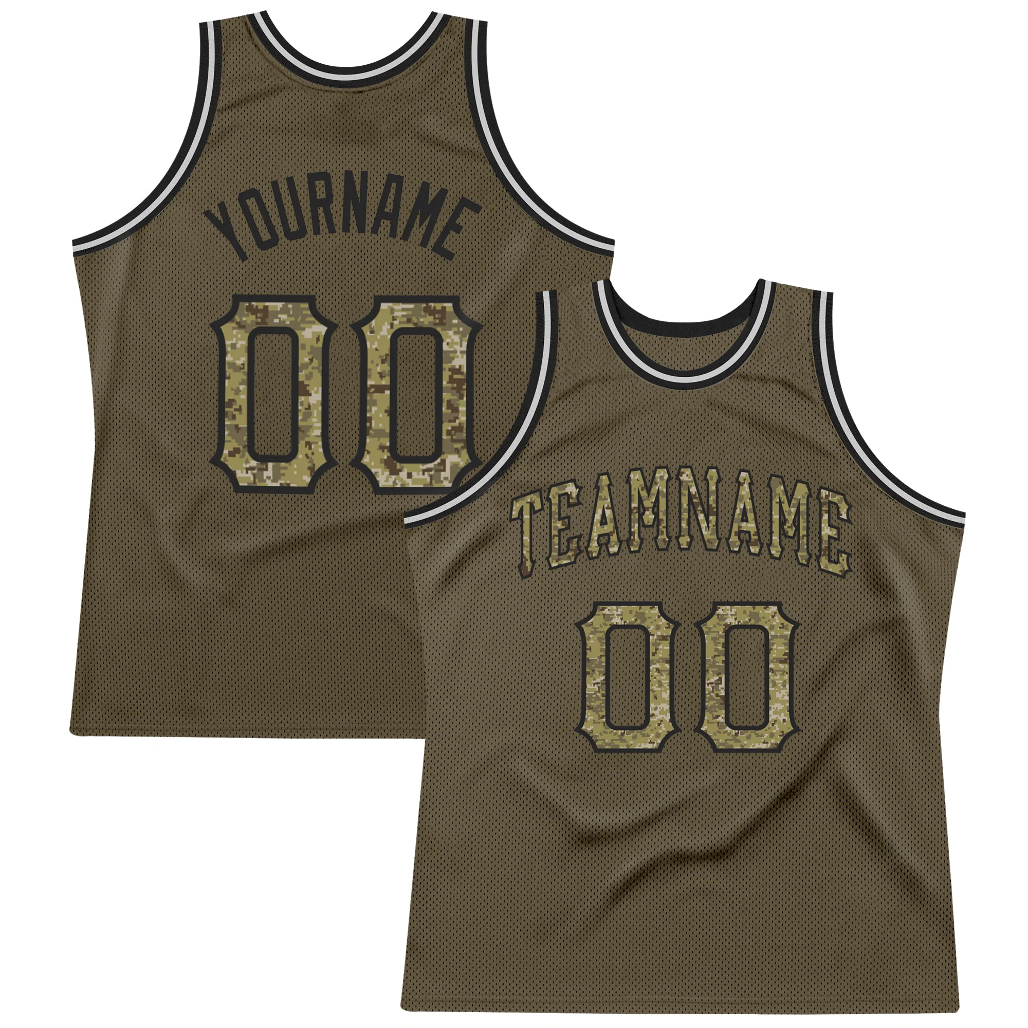 Custom Olive Camo-Black Authentic Throwback Salute To Service Basketball Jersey