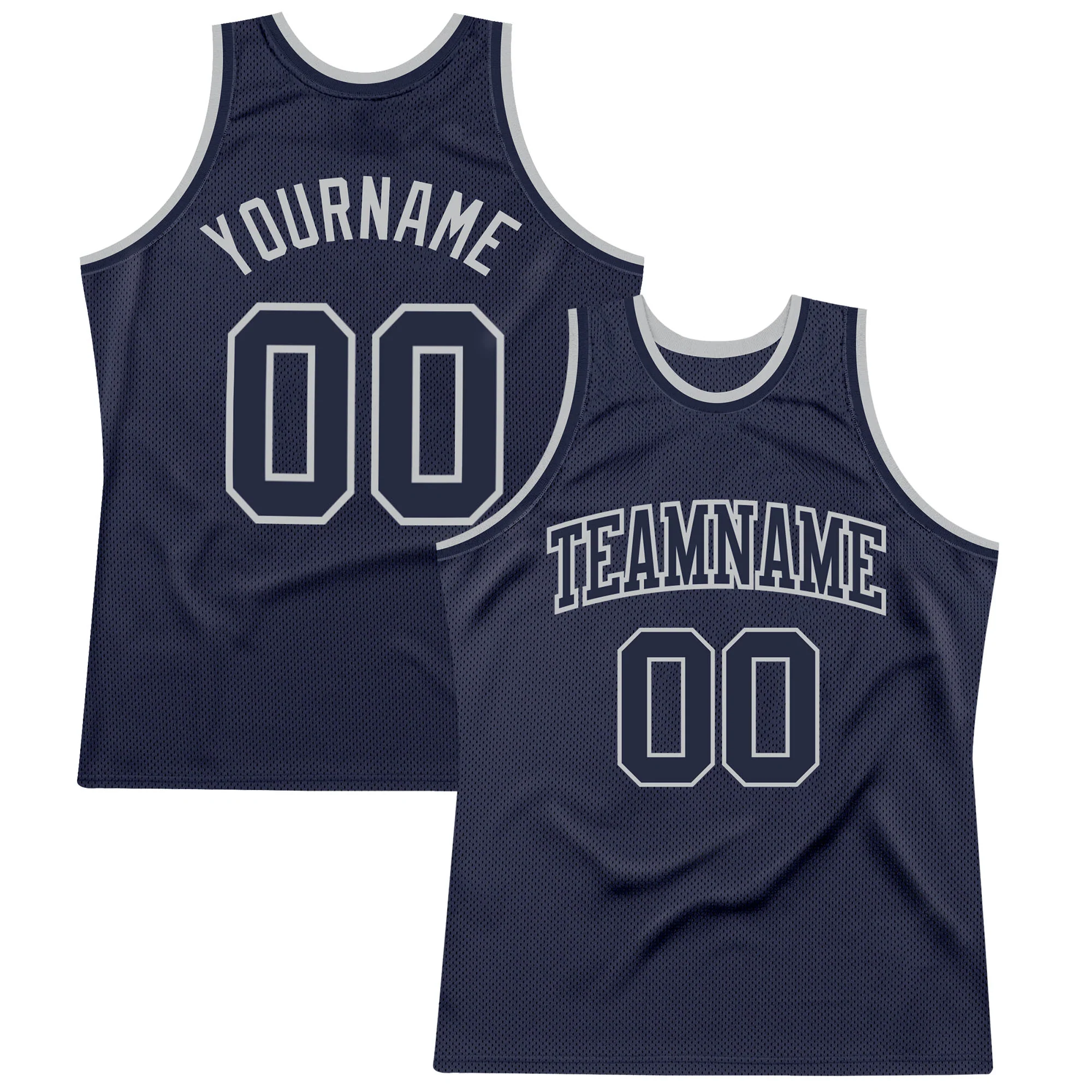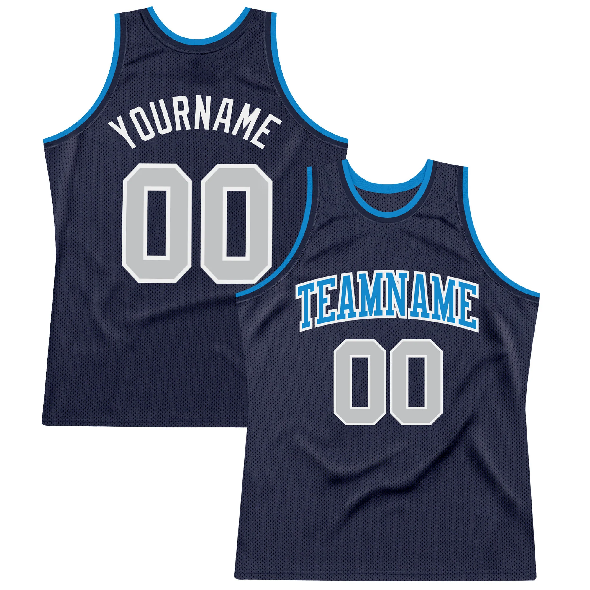 Custom Navy Gray-Blue Authentic Throwback Basketball Jersey