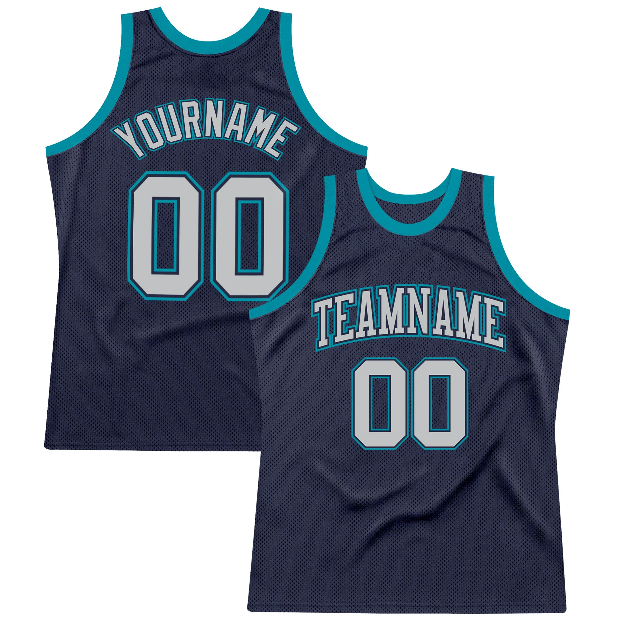 Custom Navy Gray-Teal Authentic Throwback Basketball Jersey