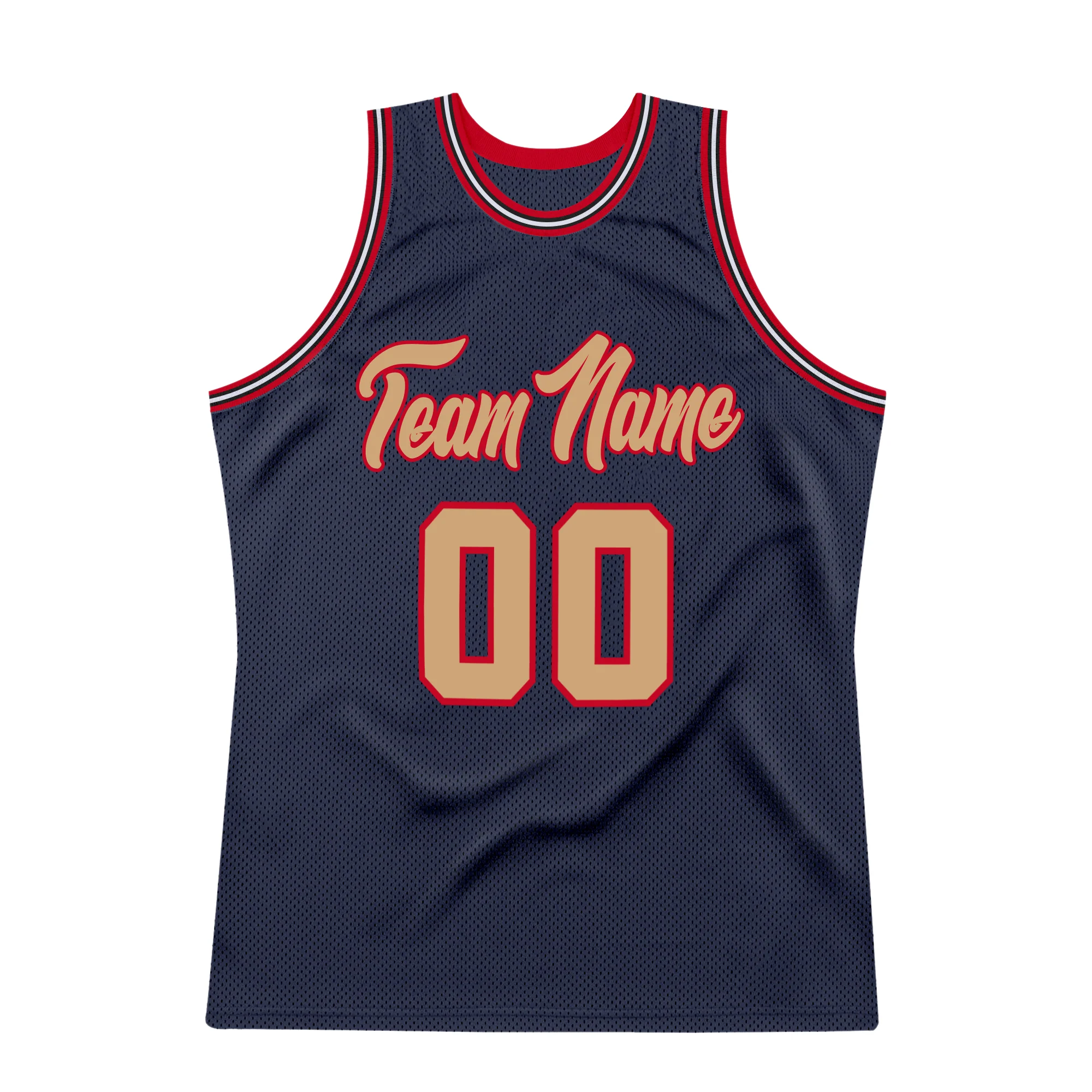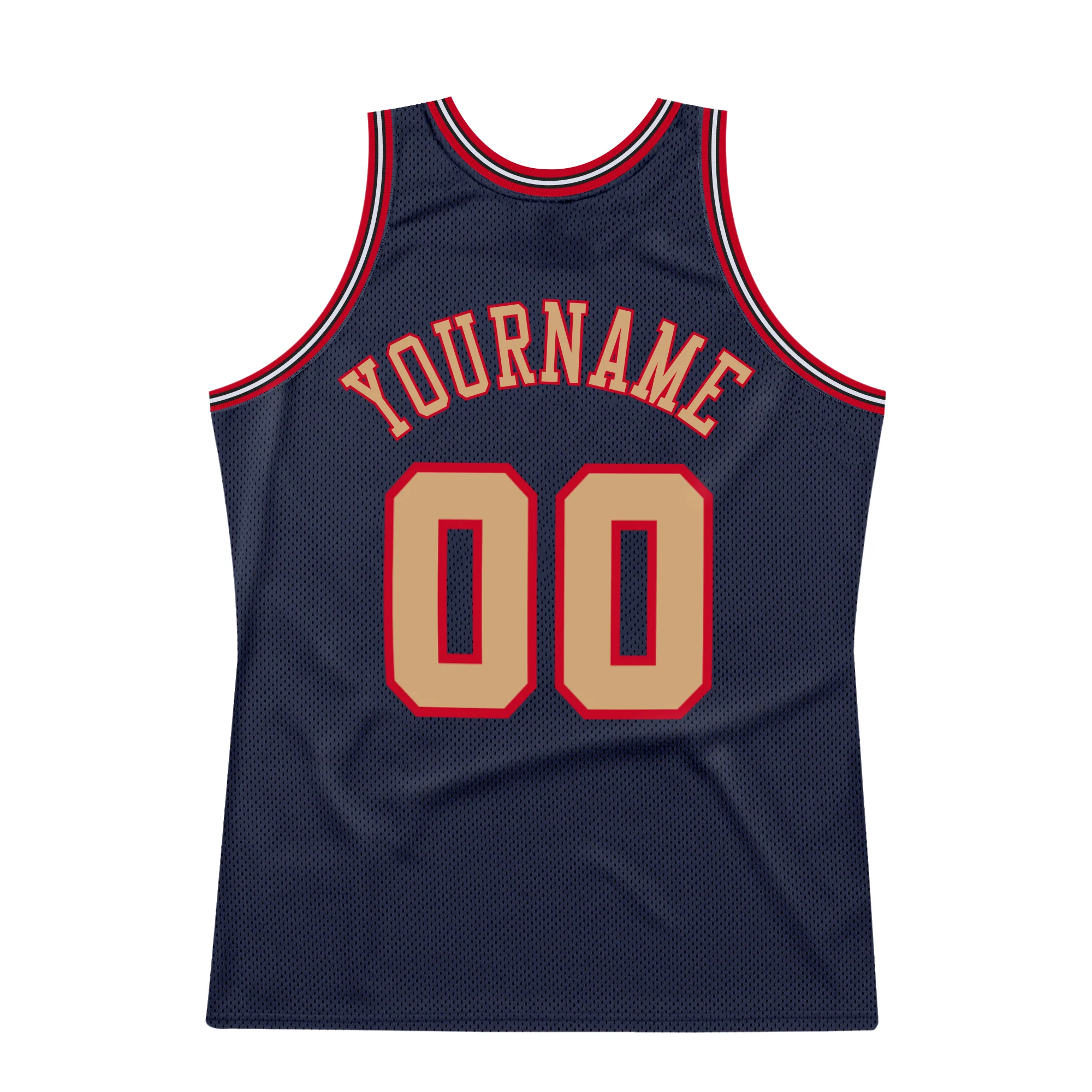 Custom Navy Old Gold-Red Authentic Throwback Basketball Jersey