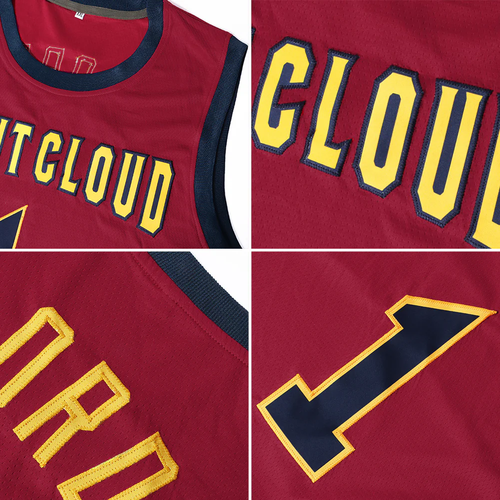 Custom Maroon Navy-Gold Authentic Throwback Basketball Jersey