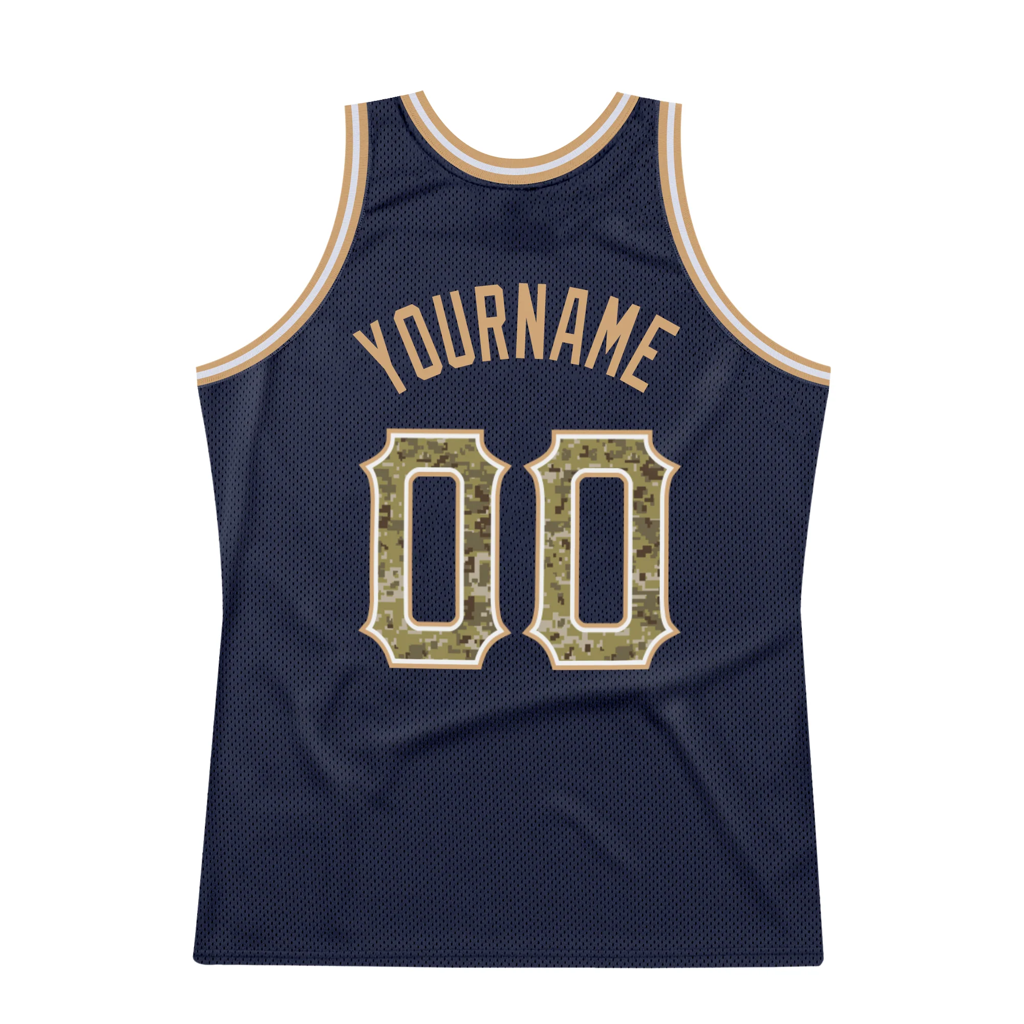 Custom Navy Camo-Old Gold Authentic Throwback Basketball Jersey