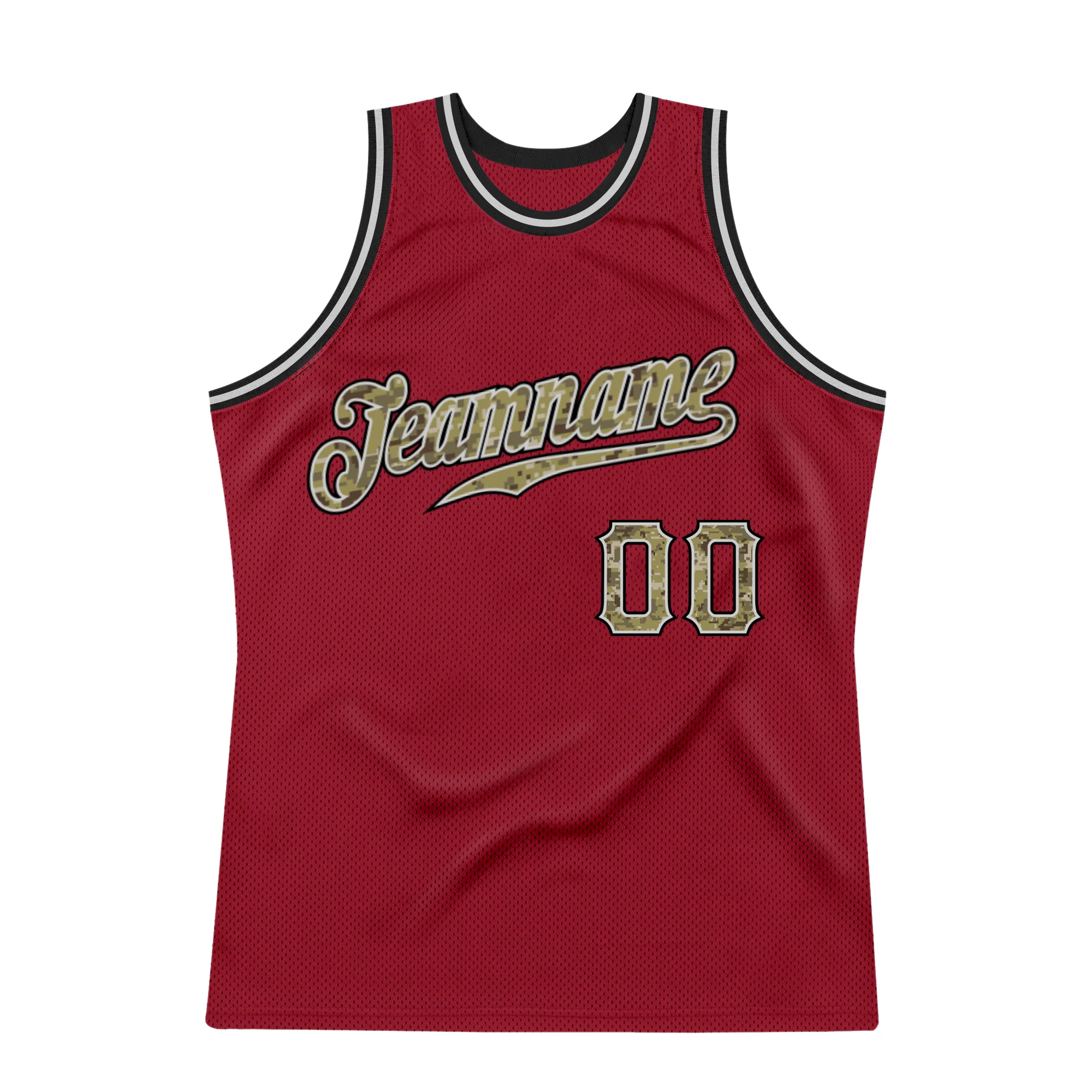 Custom Maroon Camo-Gray Authentic Throwback Basketball Jersey