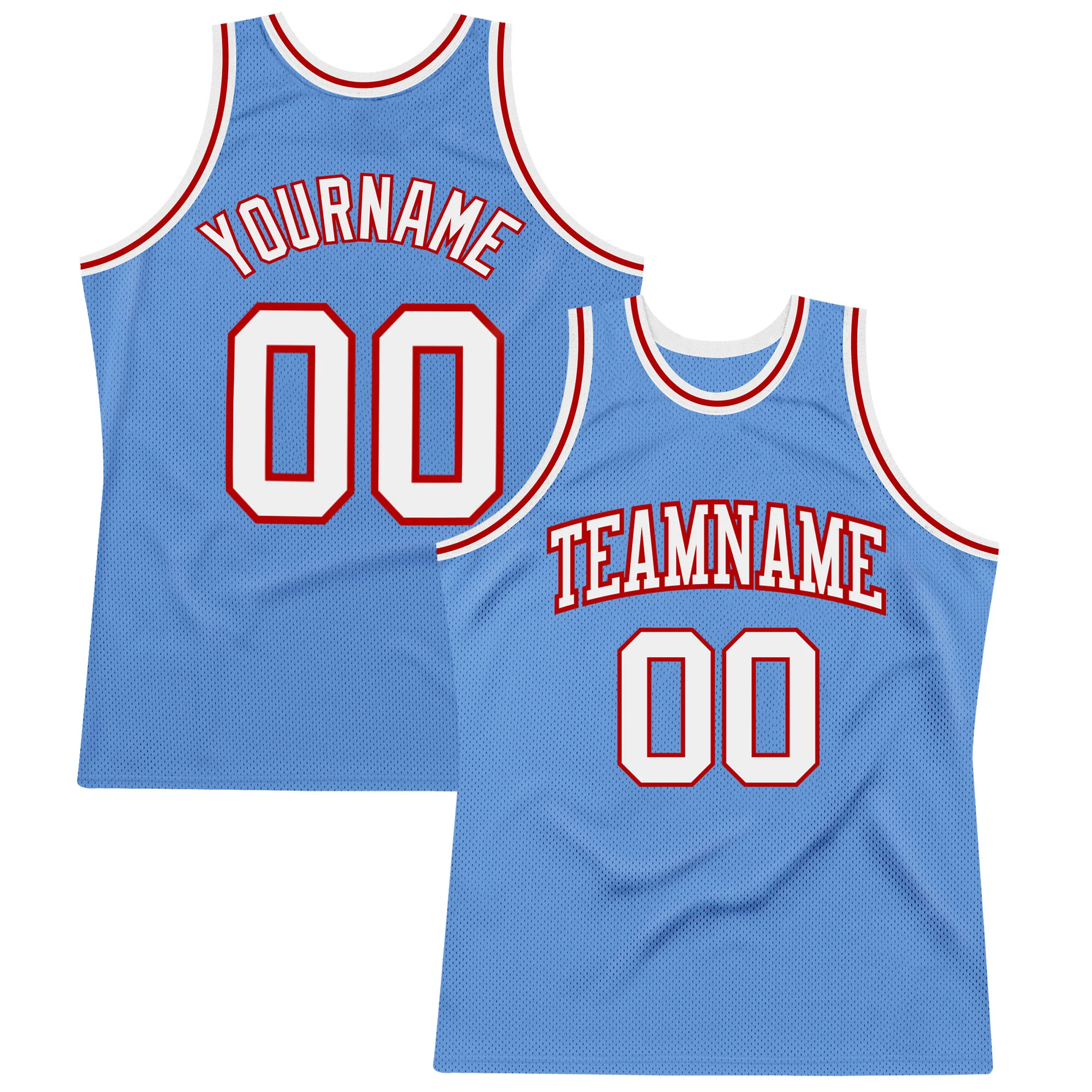 Custom Light Blue White-Red Authentic Throwback Basketball Jersey