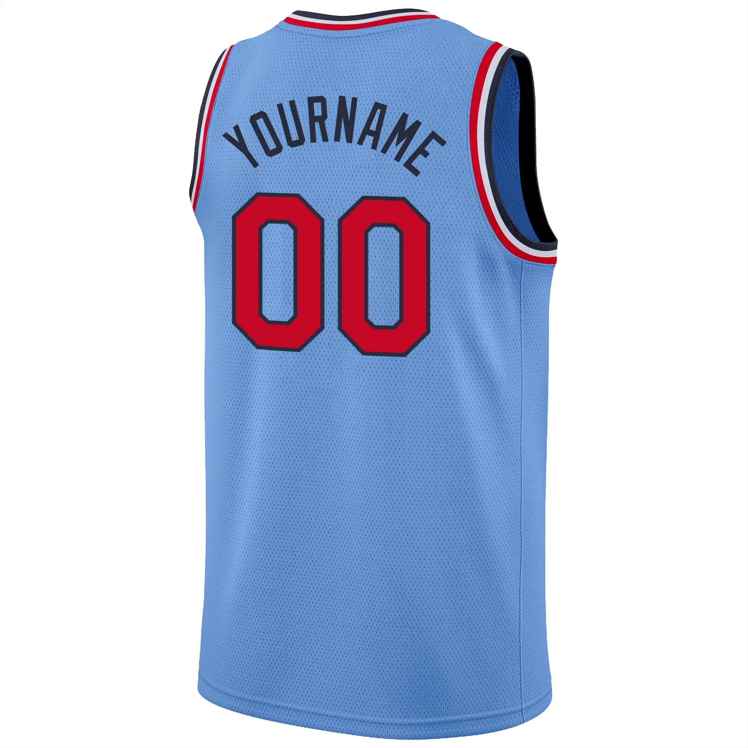 Custom Light Blue Red-Navy Round Neck Rib-Knit Basketball Jersey