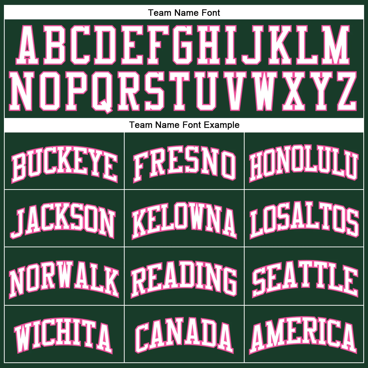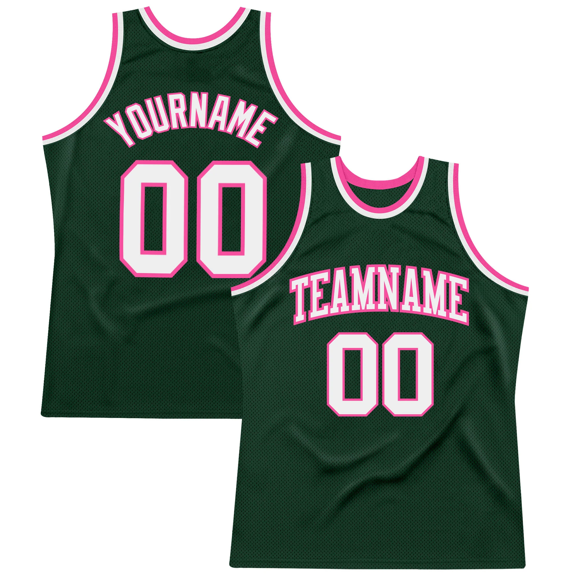 Custom Hunter Green White-Pink Authentic Throwback Basketball Jersey