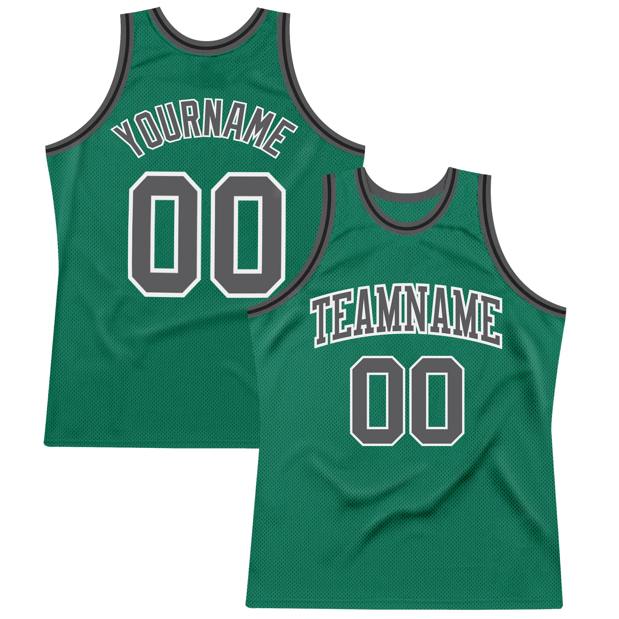 Custom Kelly Green Steel Gray-White Authentic Throwback Basketball Jersey