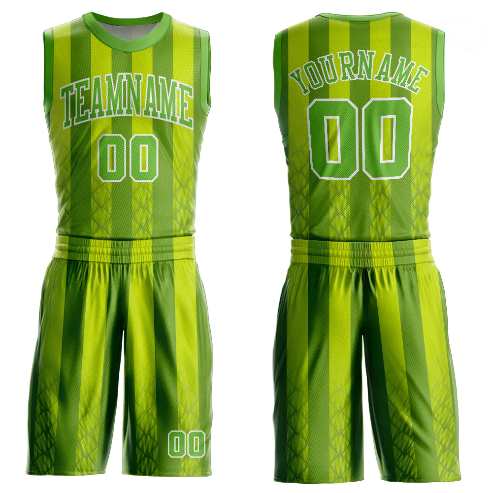 Custom Kelly Green Neon Green-White Round Neck Sublimation Basketball Suit Jersey