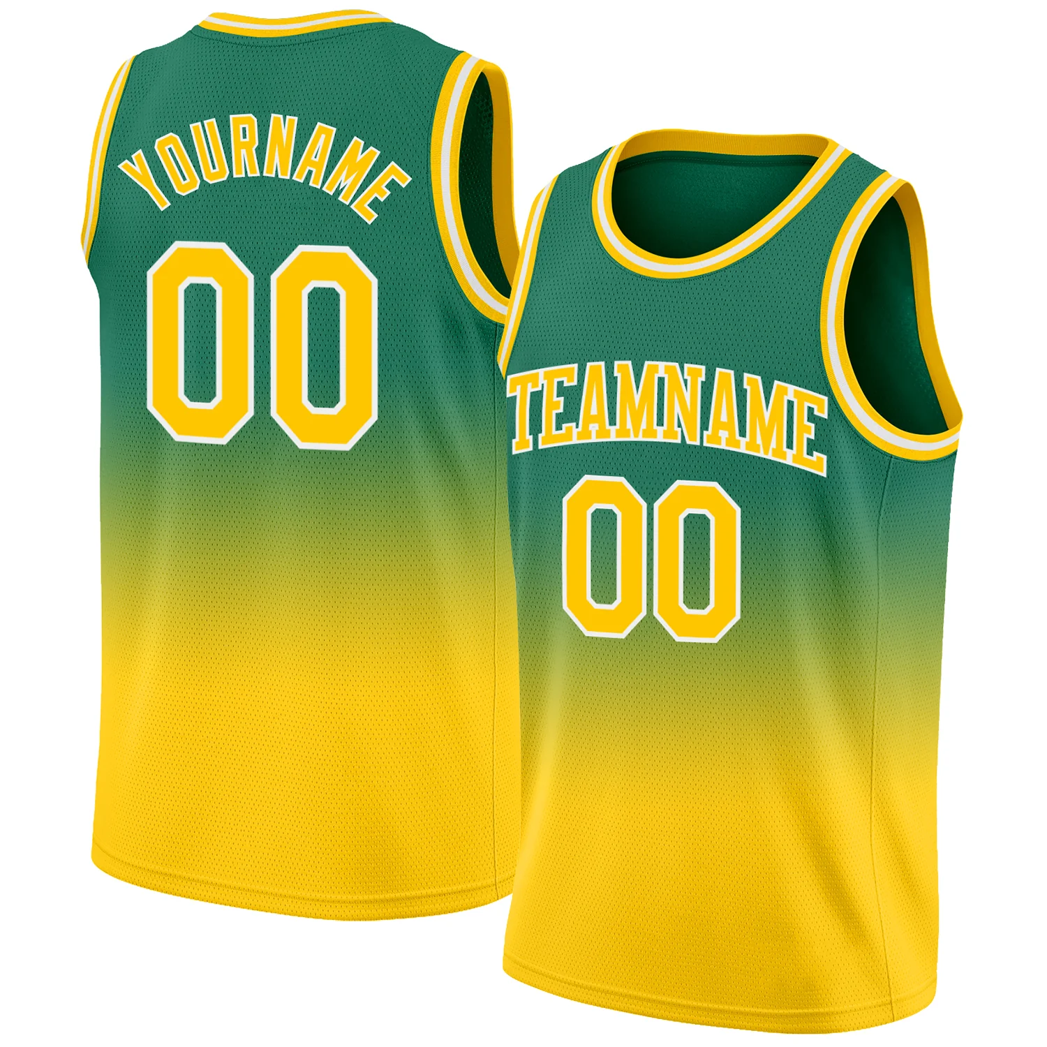 Custom Kelly Green Gold-White Authentic Fade Fashion Basketball Jersey