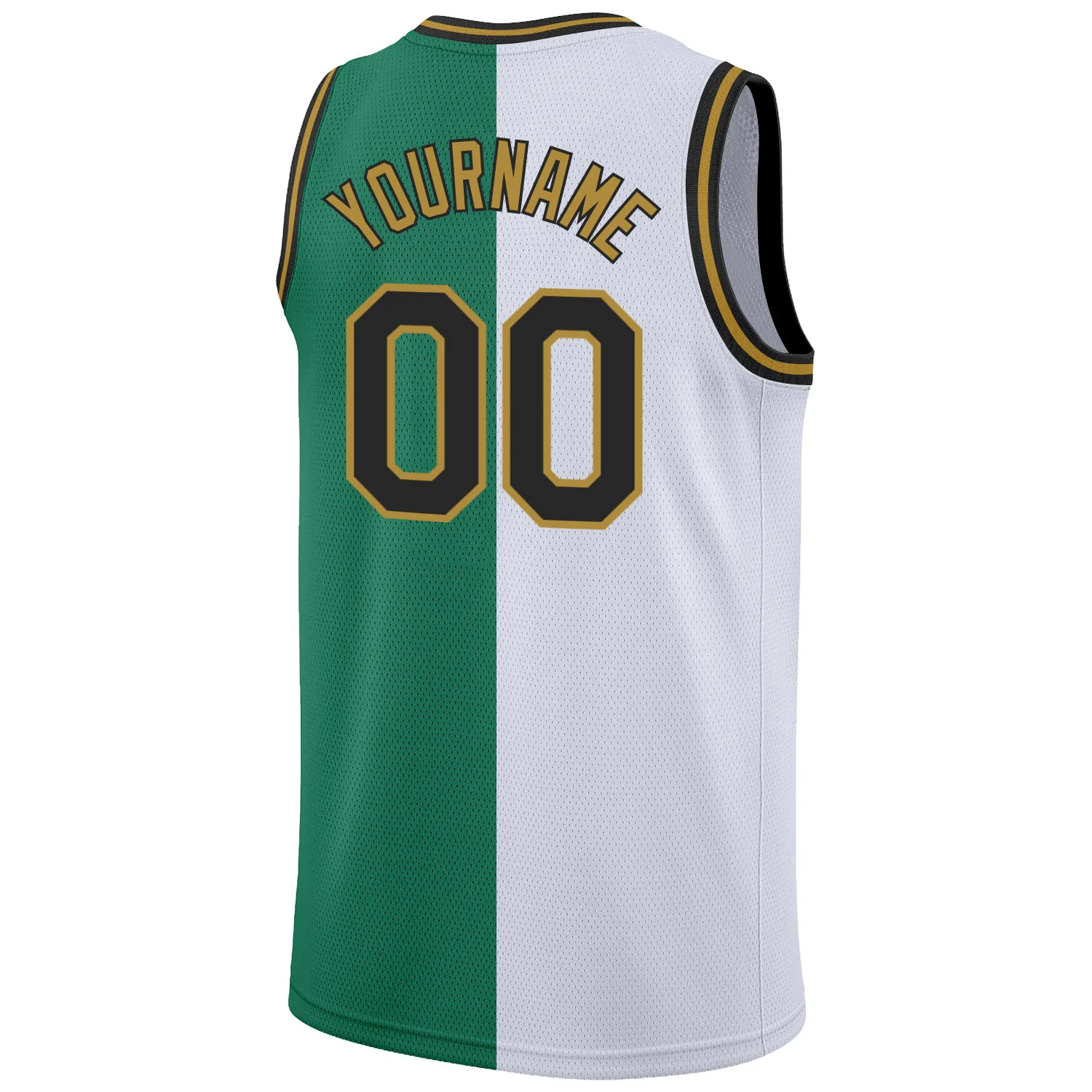 Custom Kelly Green Black-White Authentic Split Fashion Basketball Jersey