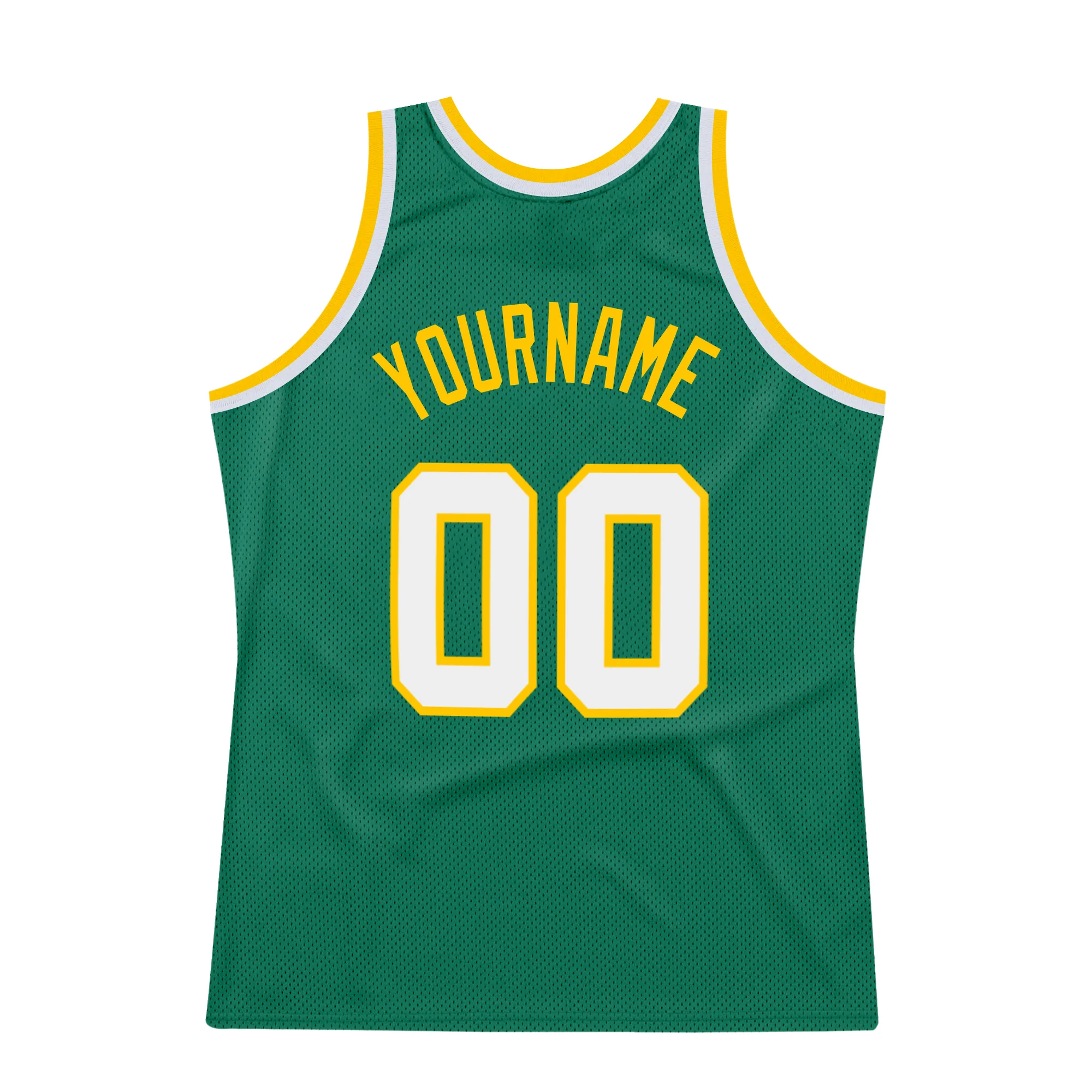 Custom Kelly Green White-Gold Authentic Throwback Basketball Jersey