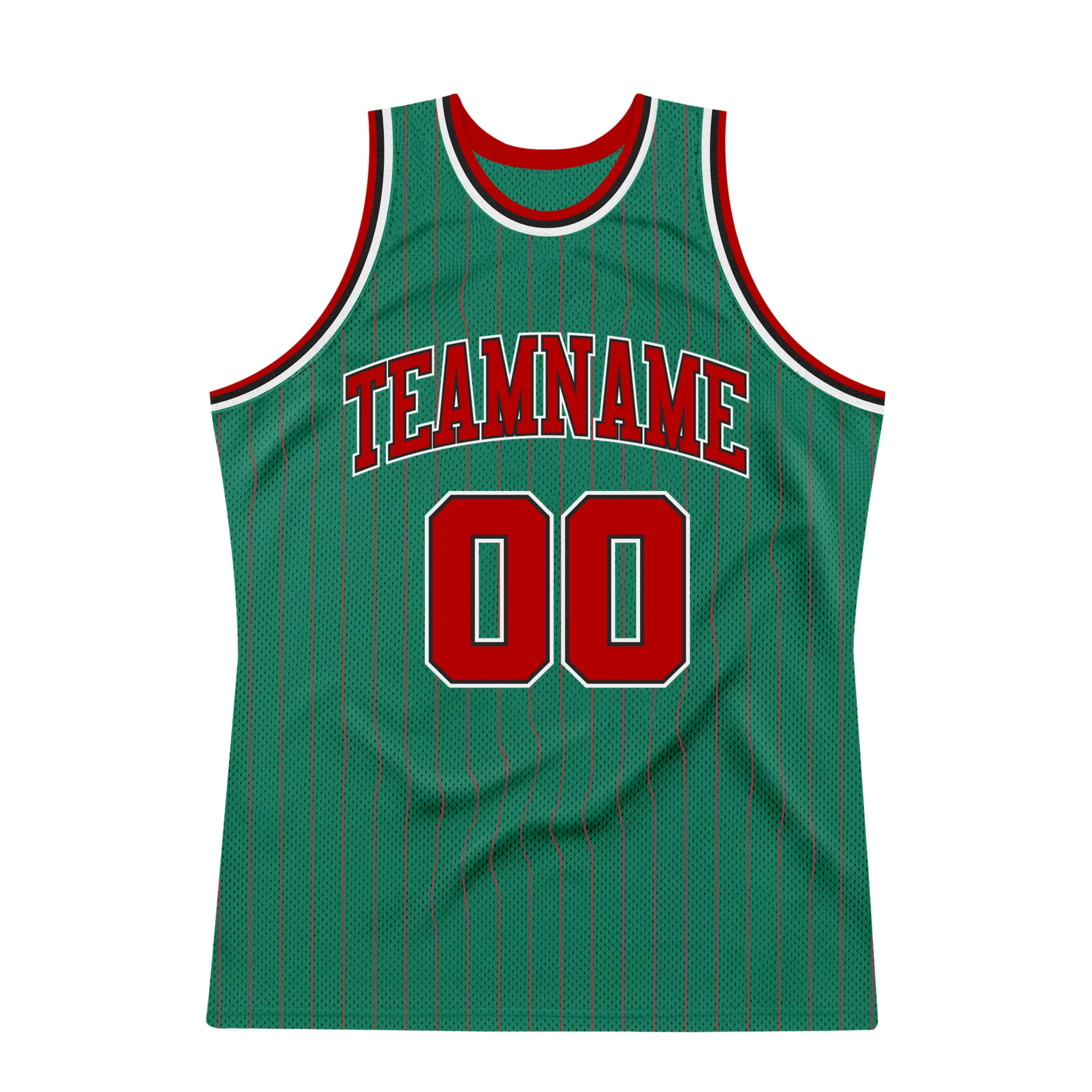Custom Kelly Green Red Pinstripe Red-Black Authentic Basketball Jersey