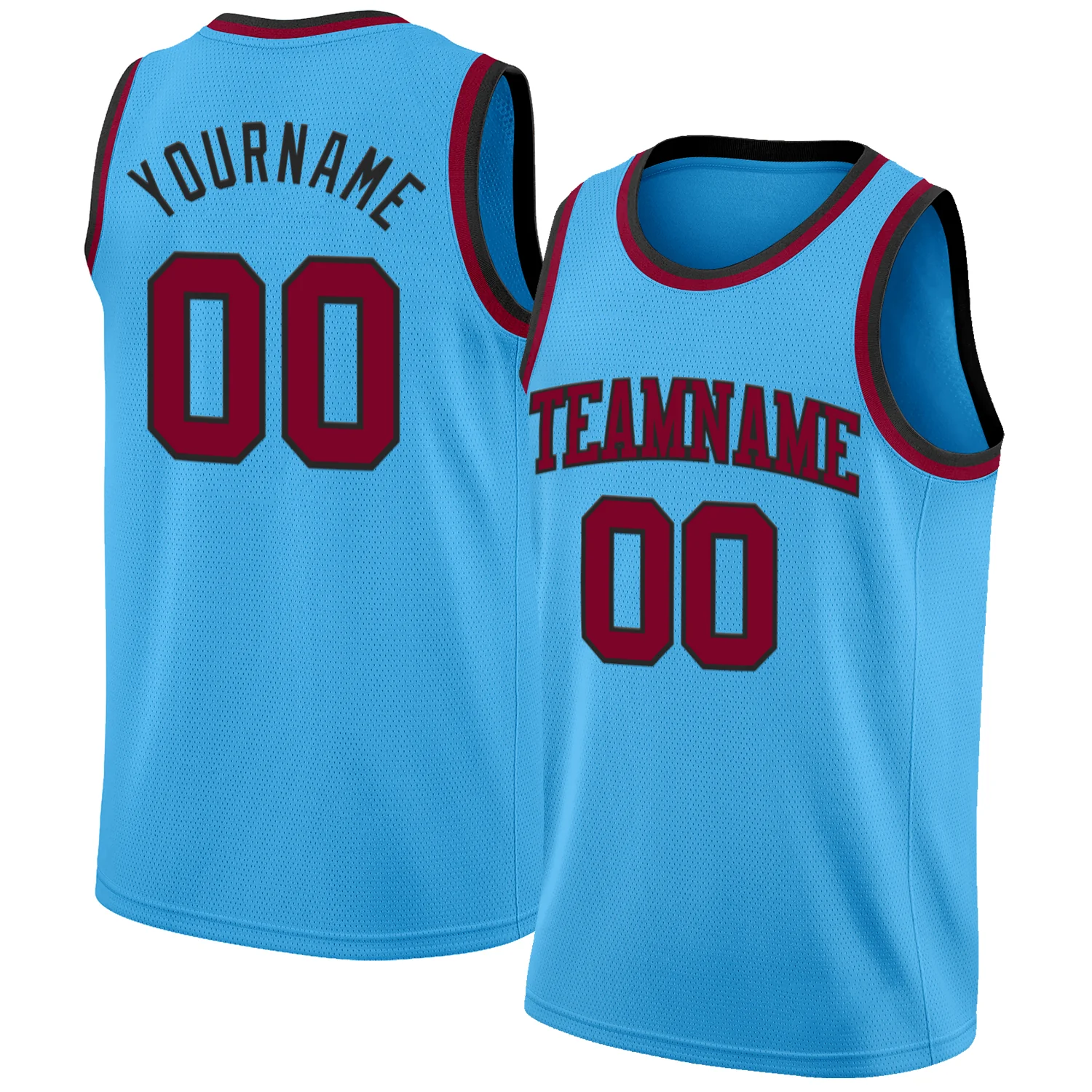 Custom Sky Blue Maroon-Black Authentic Basketball Jersey
