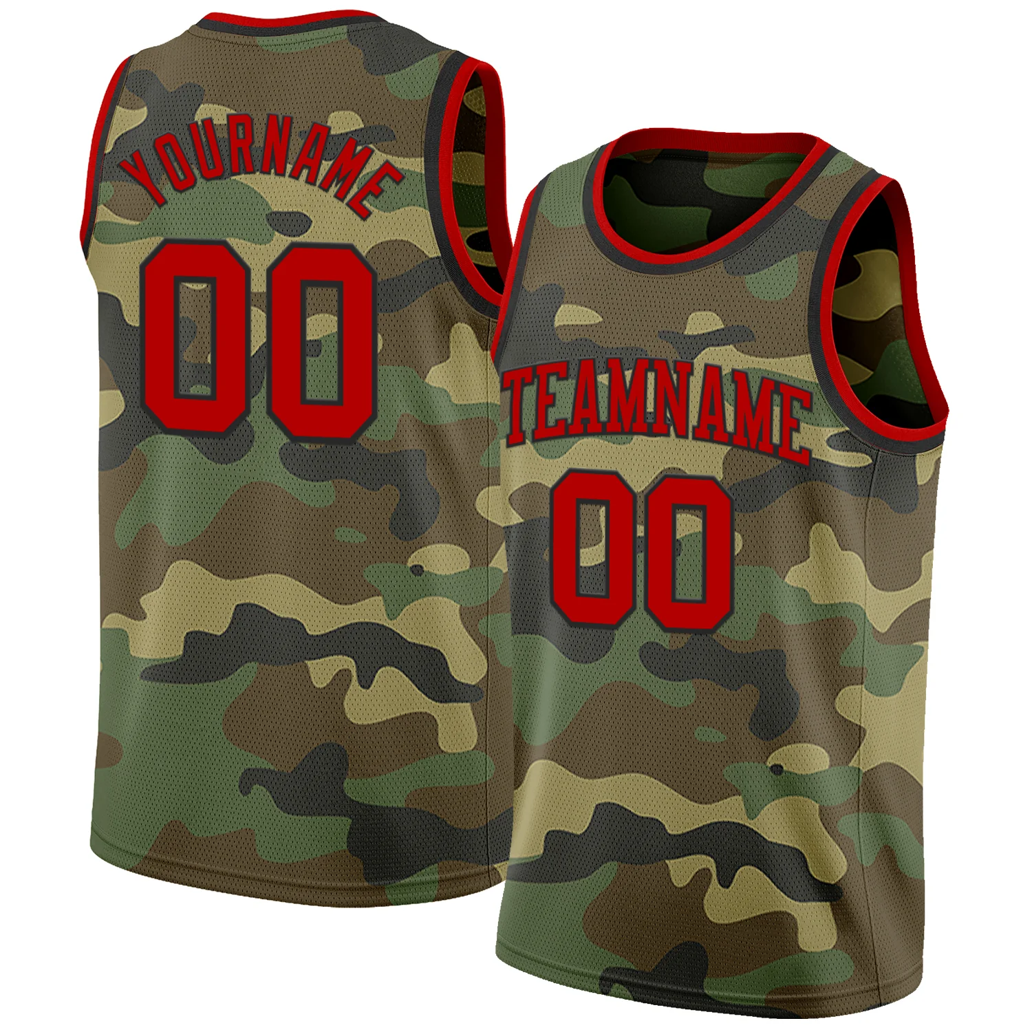 Custom Camo Red-Black Authentic Salute To Service Basketball Jersey