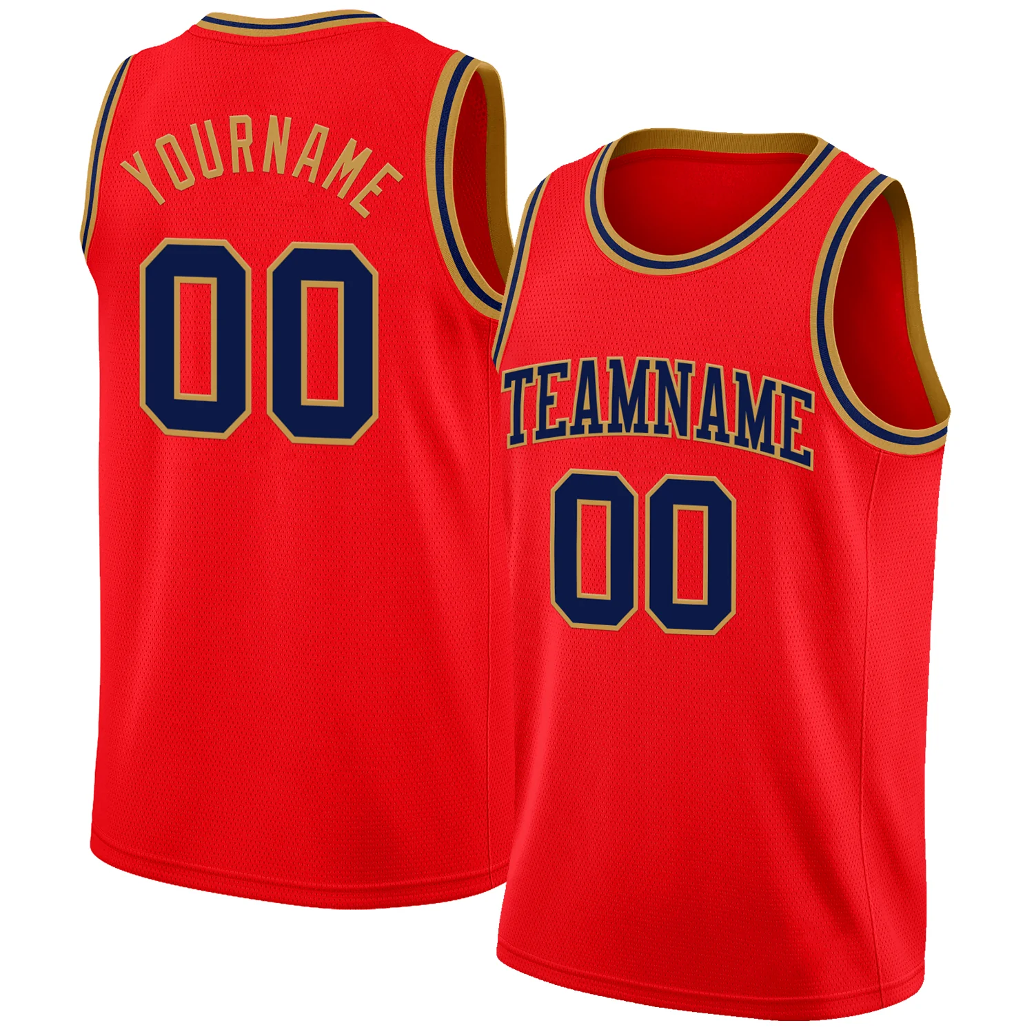 Custom Fire Red Navy-Old Gold Authentic Basketball Jersey