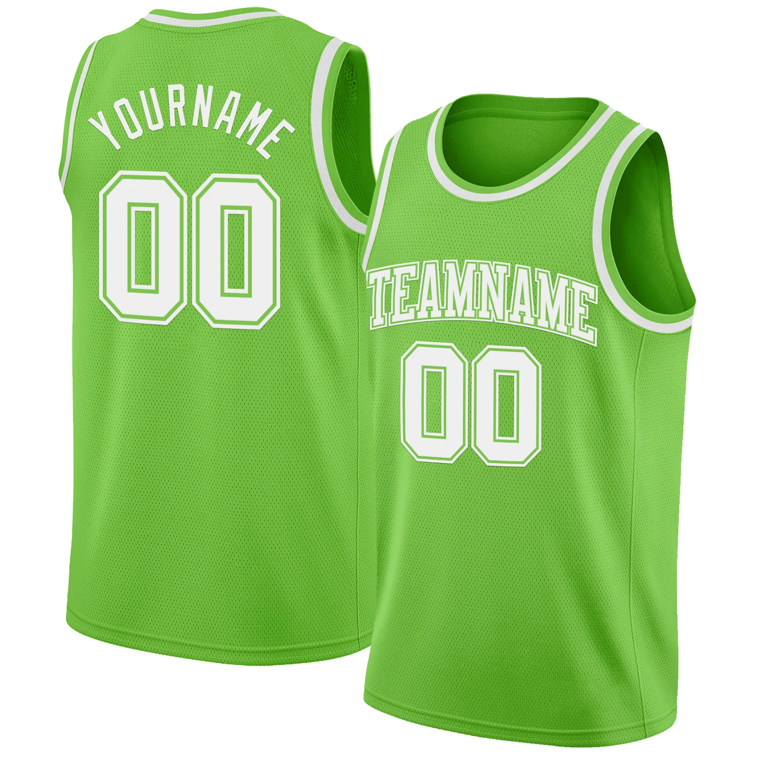 Custom Neon Green Black-White Authentic Basketball Jersey