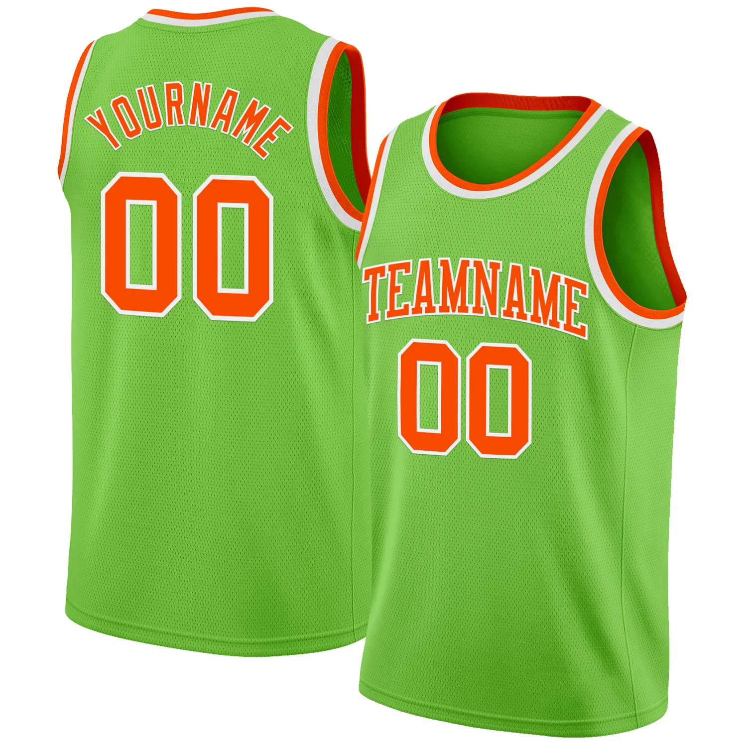 Custom Neon Green Orange-White Authentic Basketball Jersey