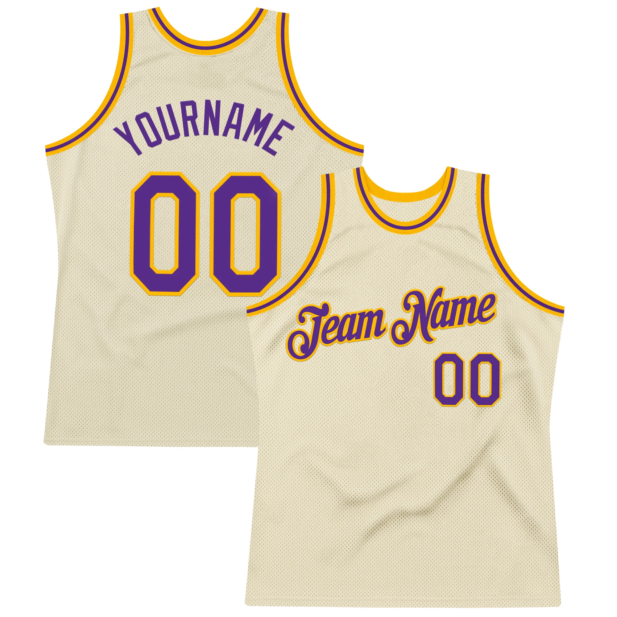 Custom Cream Purple-Gold Authentic Throwback Basketball Jersey