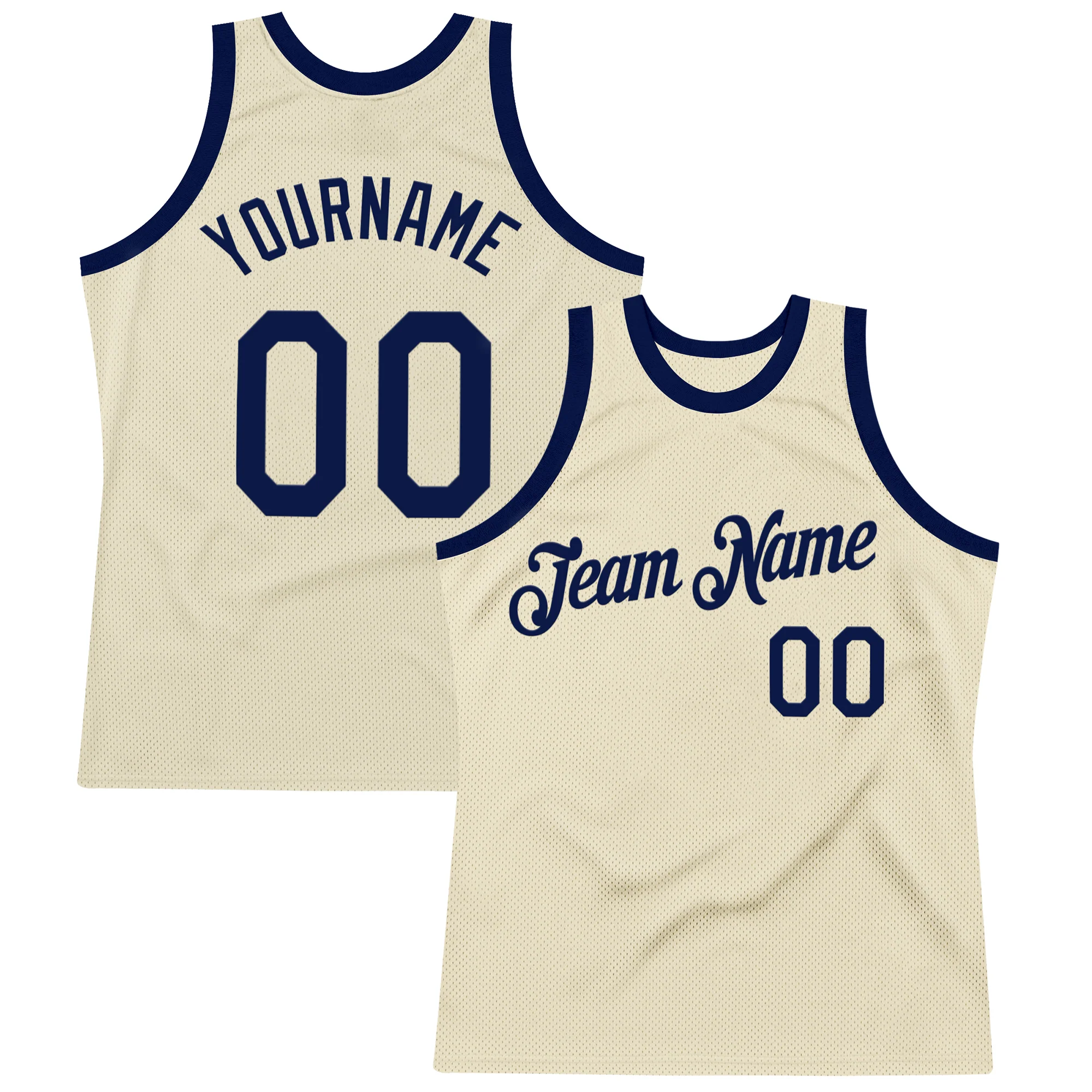 Custom Cream Navy Authentic Throwback Basketball Jersey