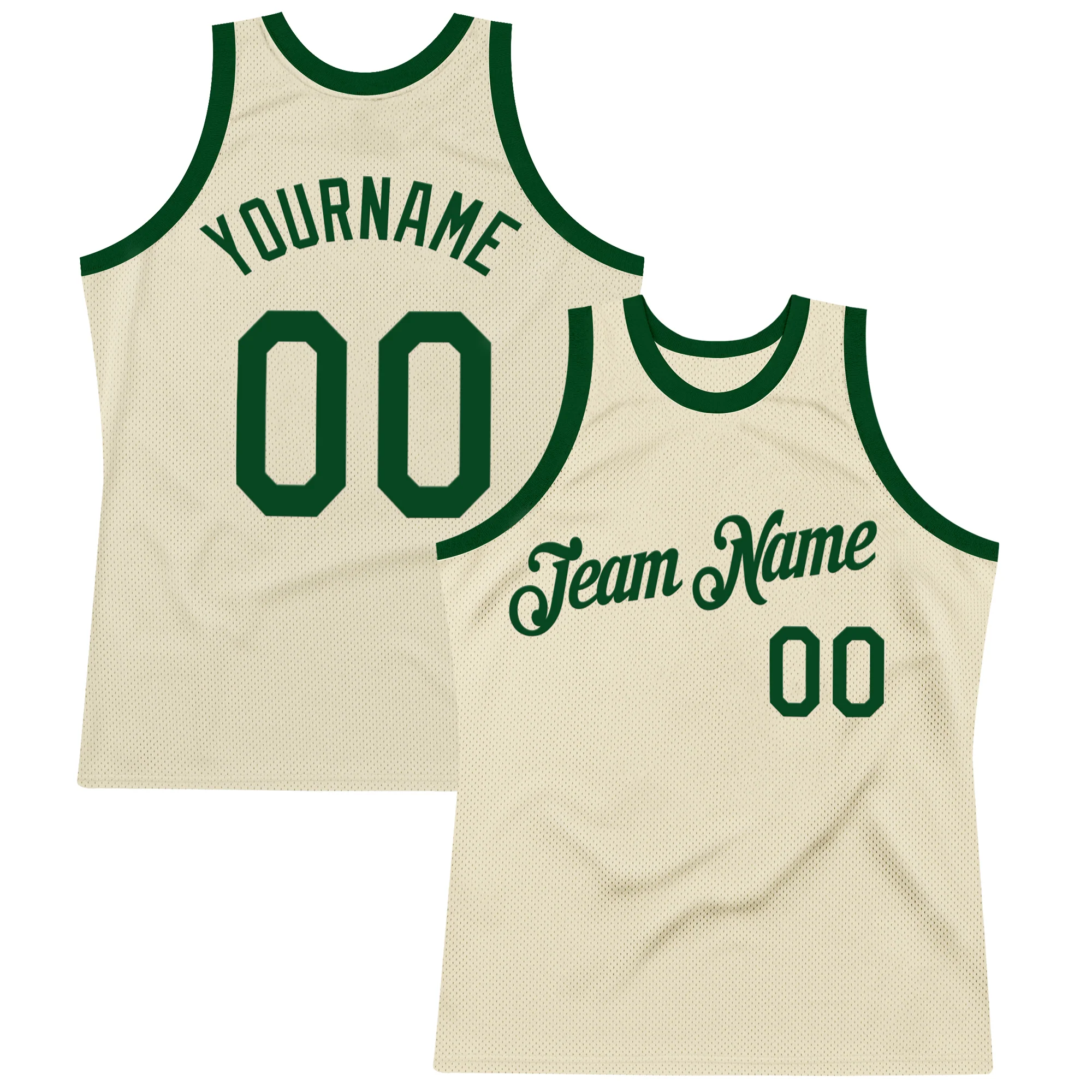 Custom Cream Green Authentic Throwback Basketball Jersey