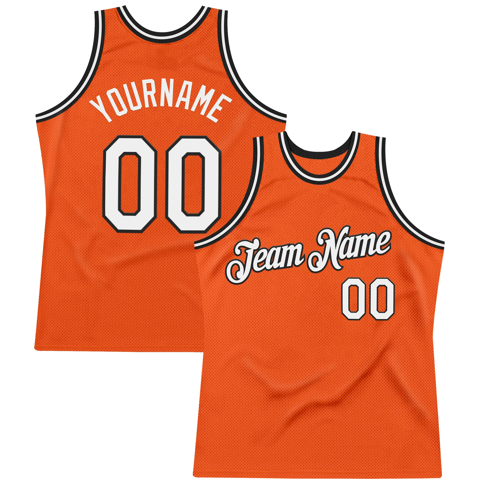 Custom Orange White-Black Authentic Throwback Basketball Jersey