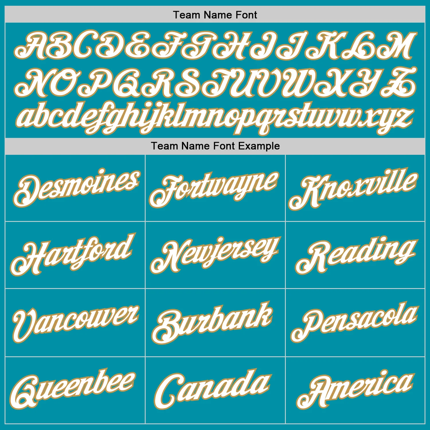Custom Teal White-Old Gold Authentic Throwback Basketball Jersey