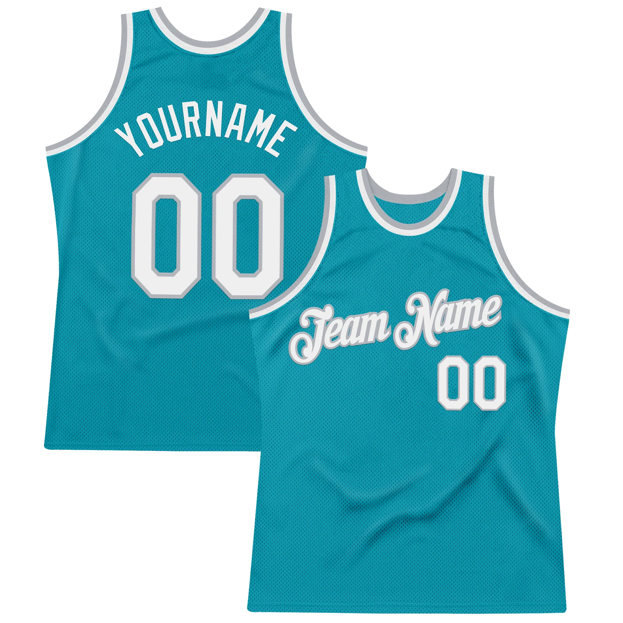 Custom Teal White-Gray Authentic Throwback Basketball Jersey