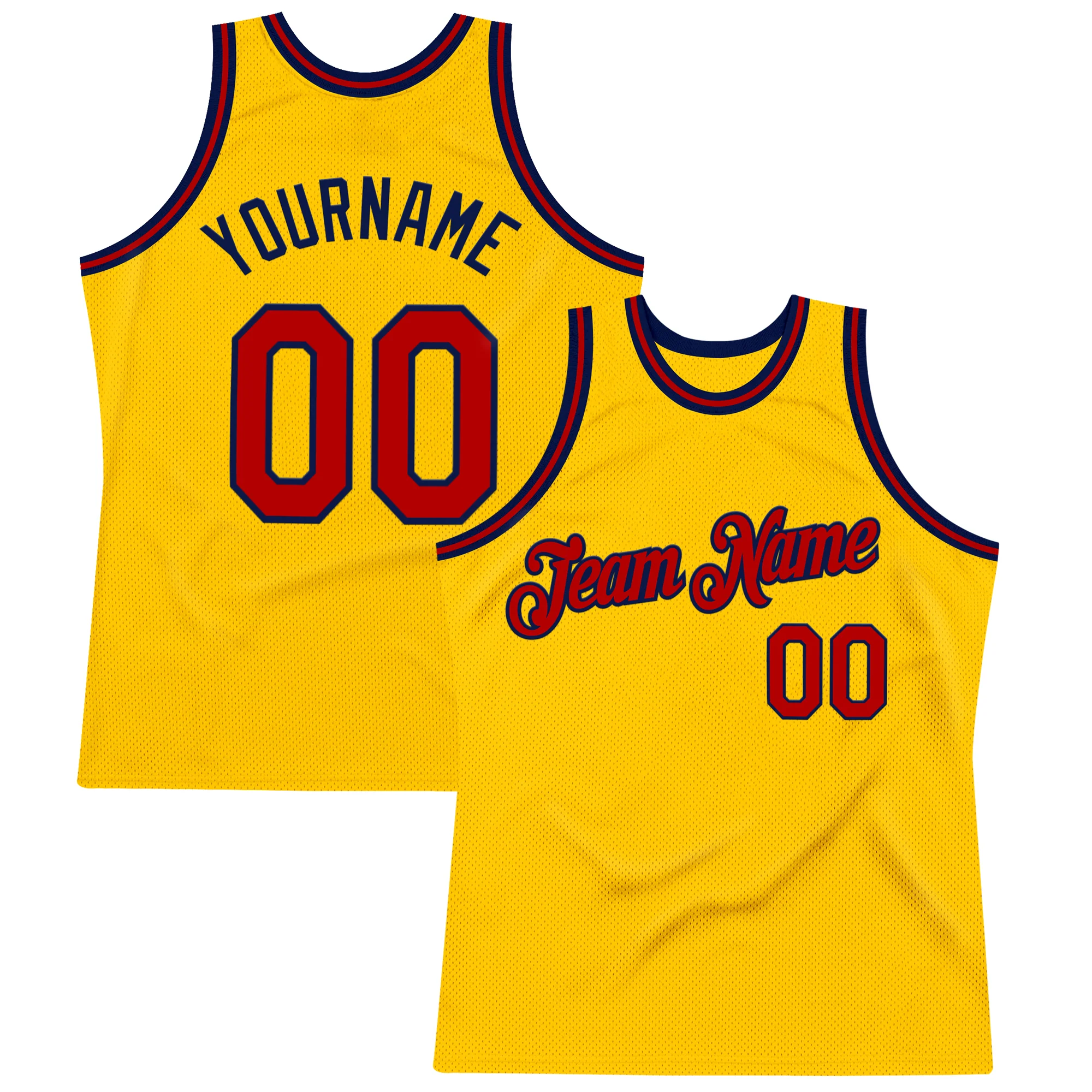 Custom Gold Red-Navy Authentic Throwback Basketball Jersey