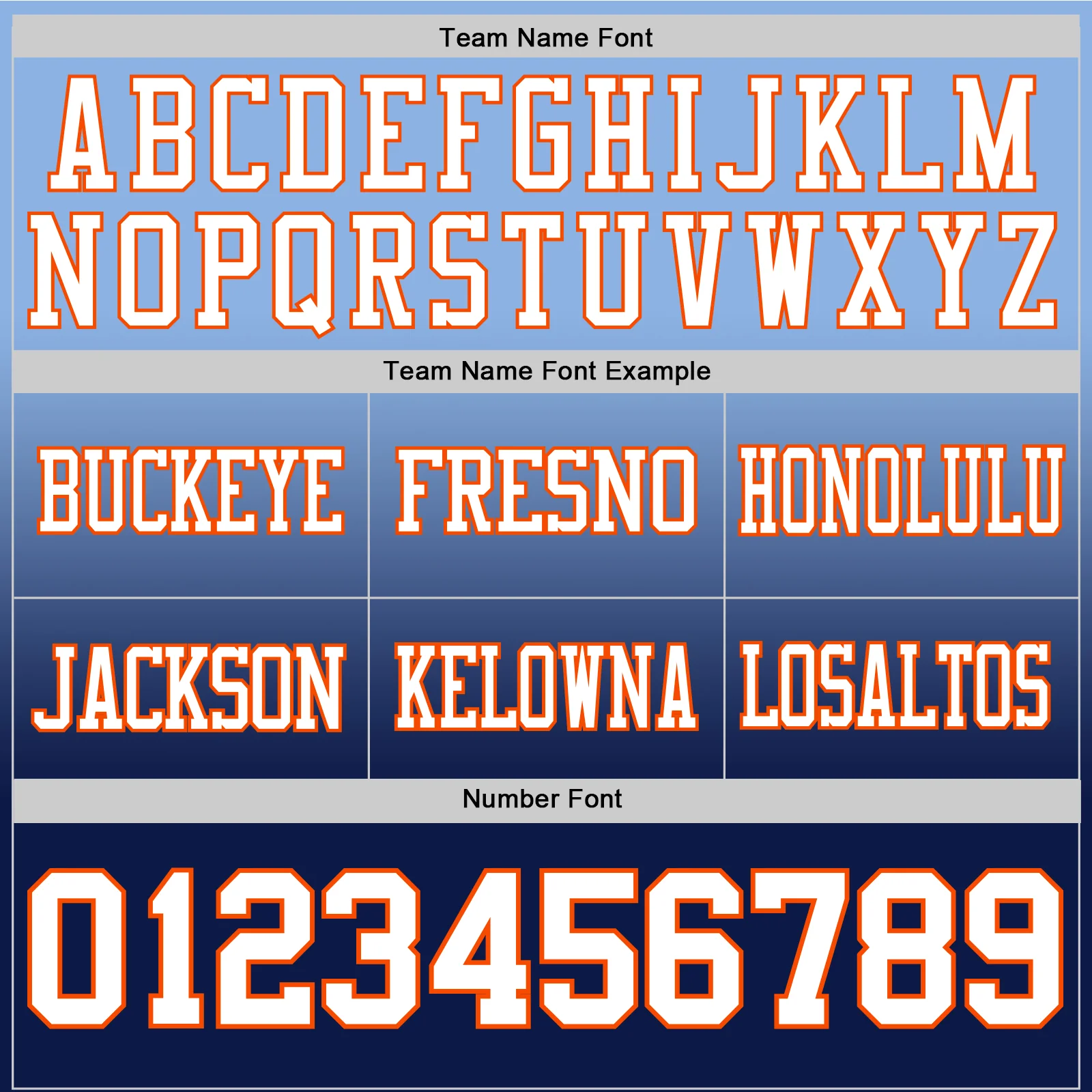 Custom Light Blue White Navy-Orange Authentic Fade Fashion Football Jersey