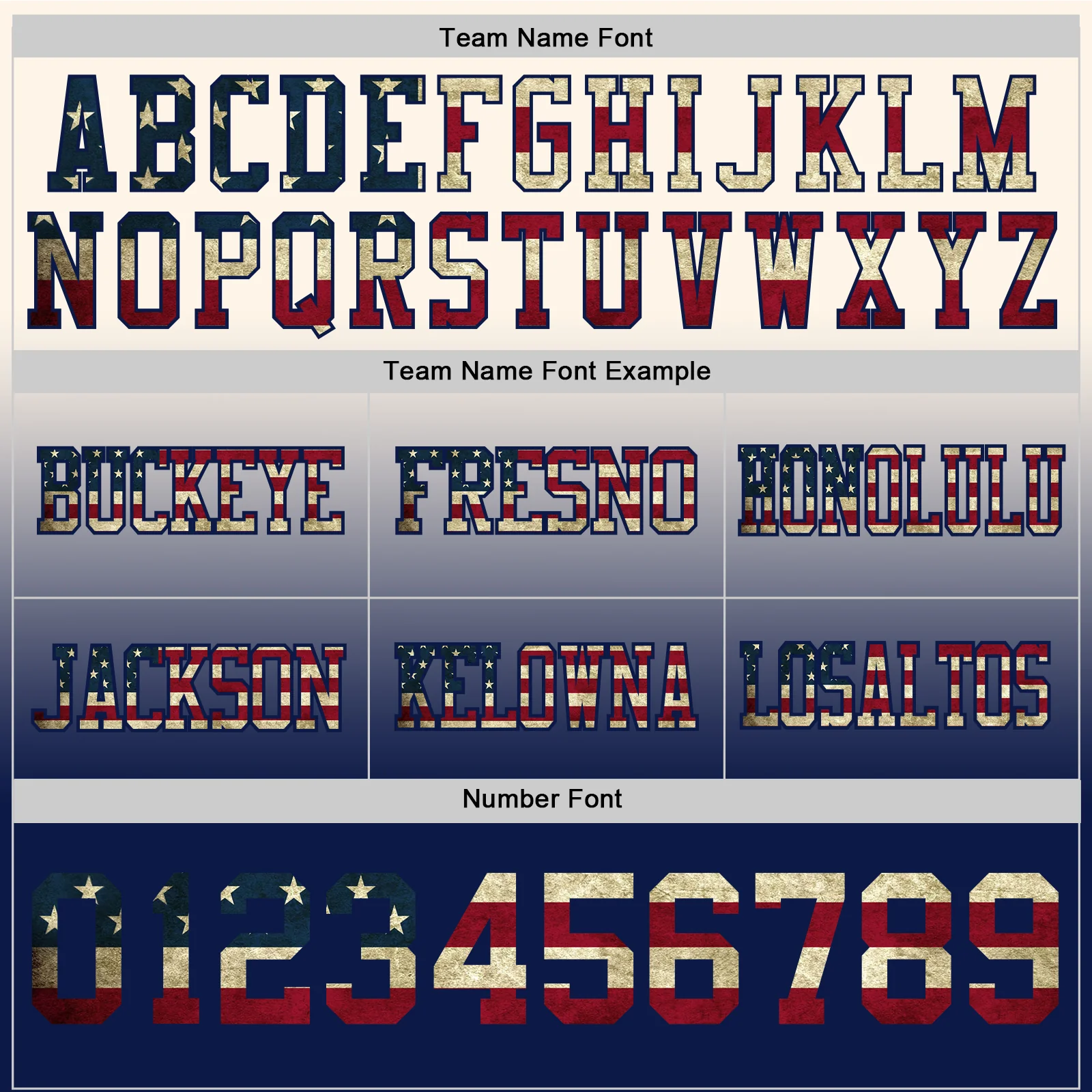 Custom Cream Vintage USA Flag-Navy Authentic Fade Fashion Football Jersey