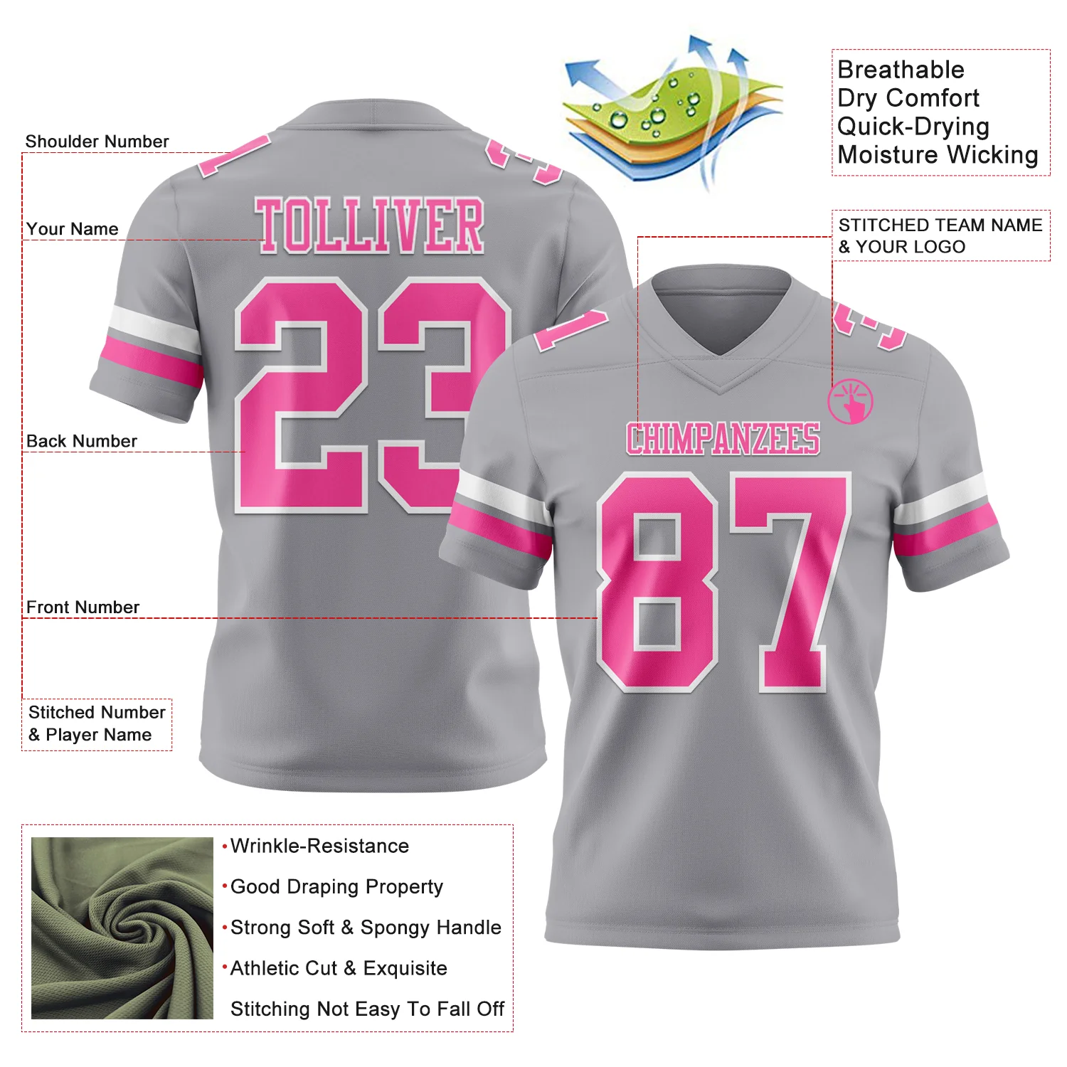 Custom Gray Pink-Black Authentic Football Jersey