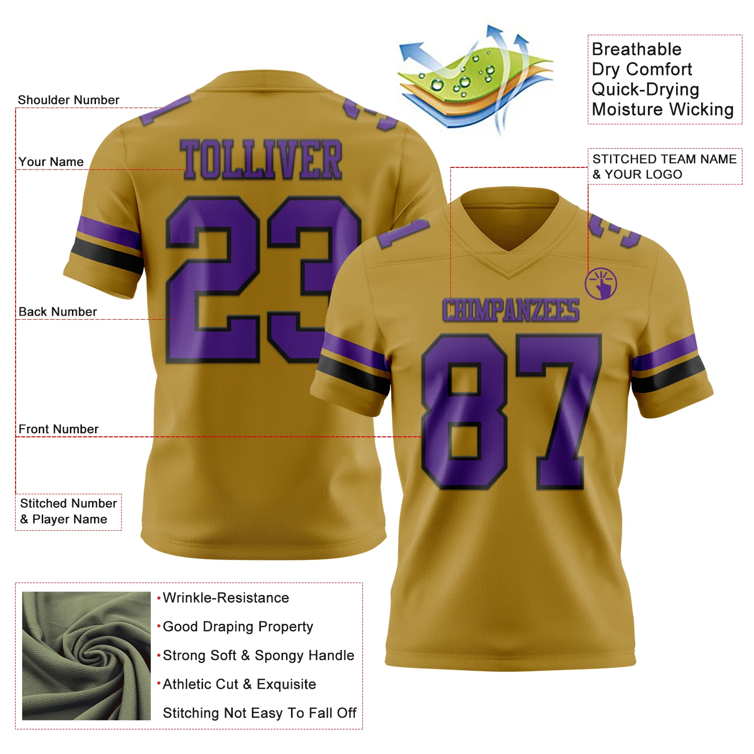 Custom Old Gold Purple-Black Authentic Football Jersey