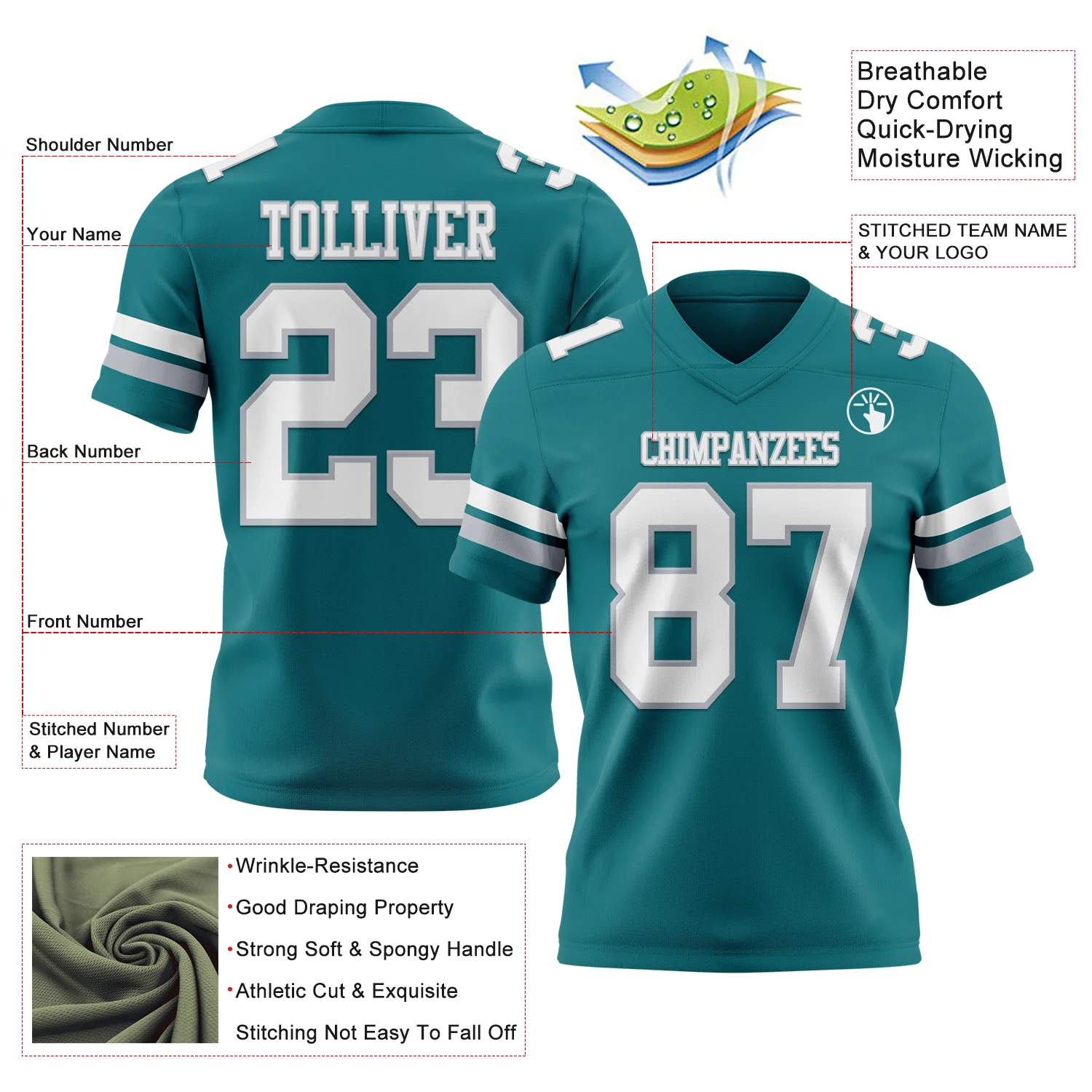 Custom Teal Black-Old Gold Authentic Football Jersey