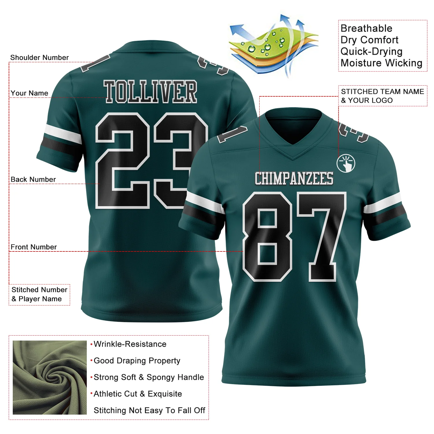Custom Midnight Green Gray-Black Authentic Football Jersey