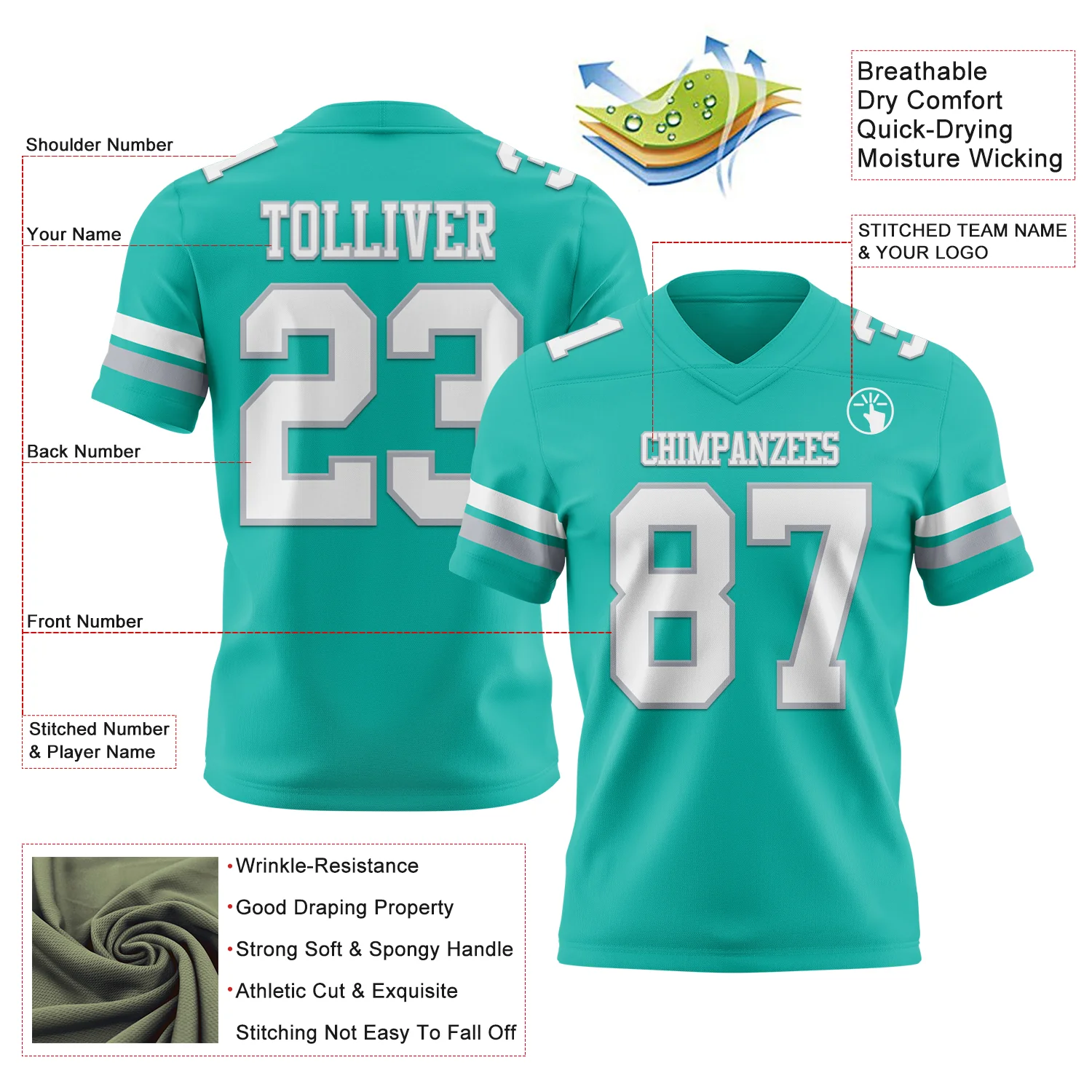 Custom Aqua Gray-Navy Authentic Football Jersey