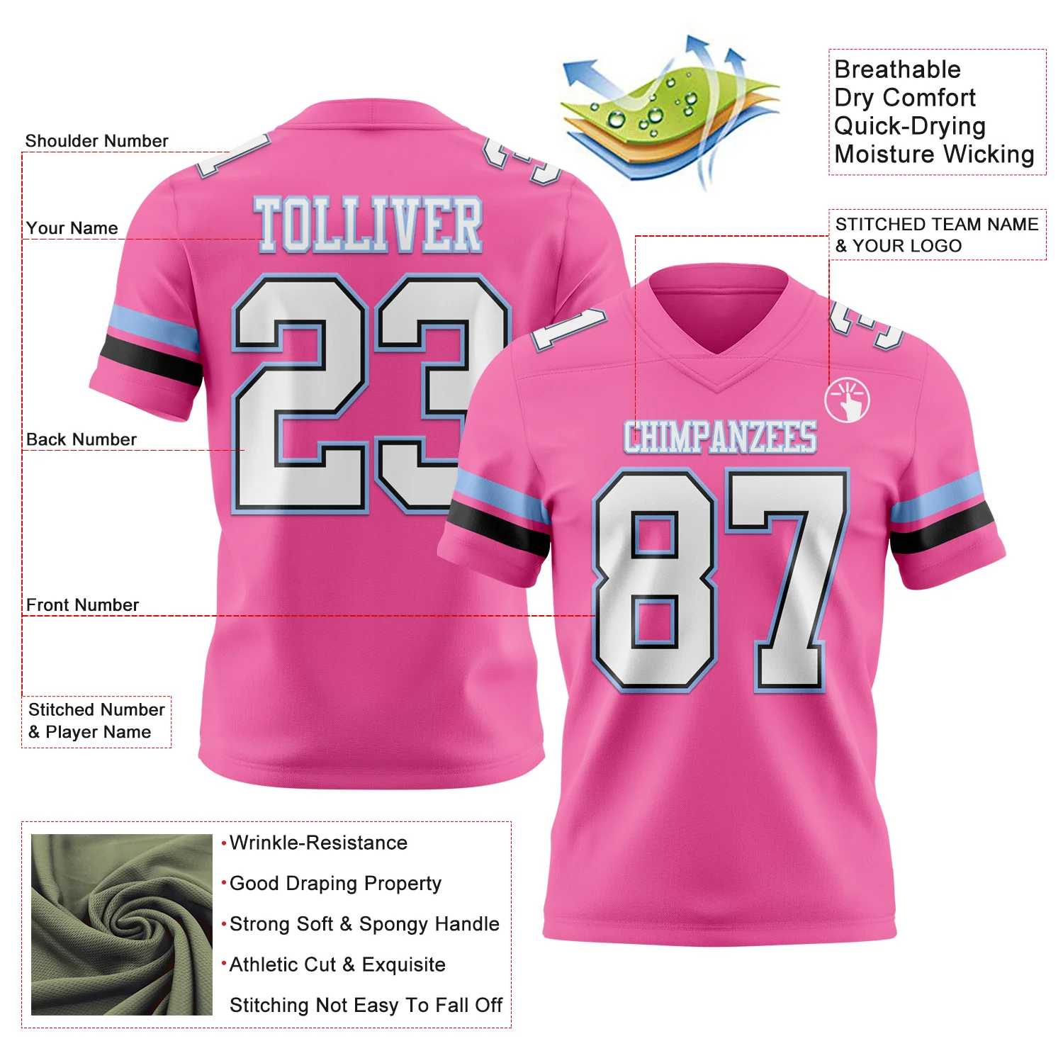 Custom Pink White Black-Light Blue Authentic Football Jersey