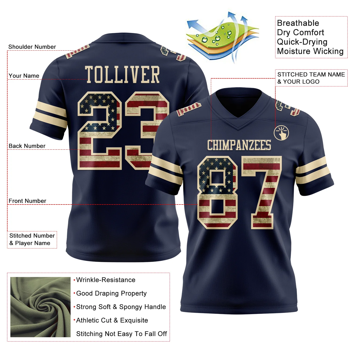 Custom Navy Vintage USA Flag-Cream Authentic Football Jersey
