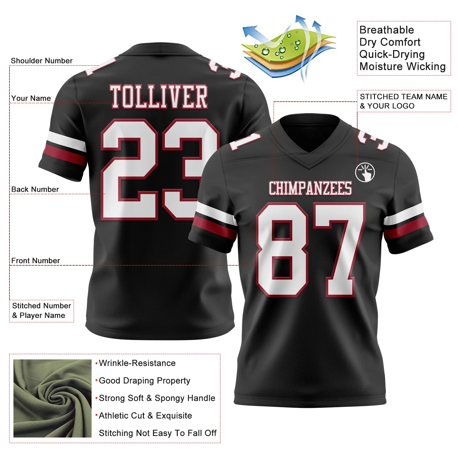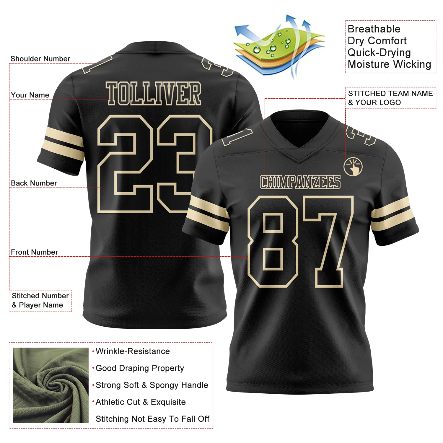 Custom Black Cardinal-Cream Authentic Football Jersey