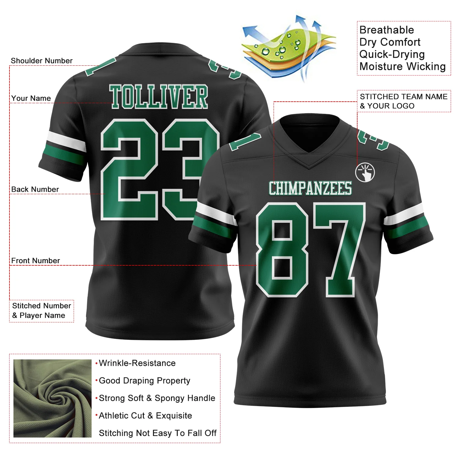 Custom Black Kelly Green-Gold Authentic Football Jersey