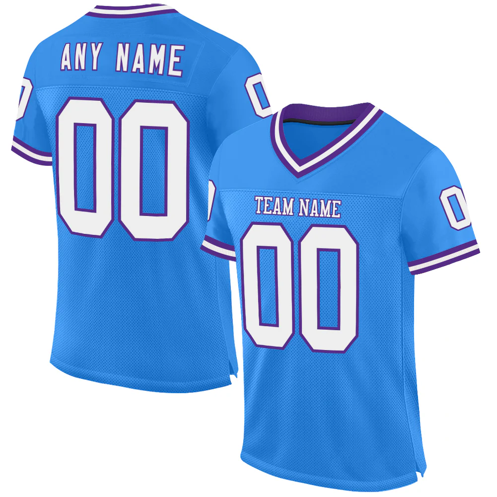 Custom Powder Blue White-Purple Mesh Authentic Throwback Football Jersey