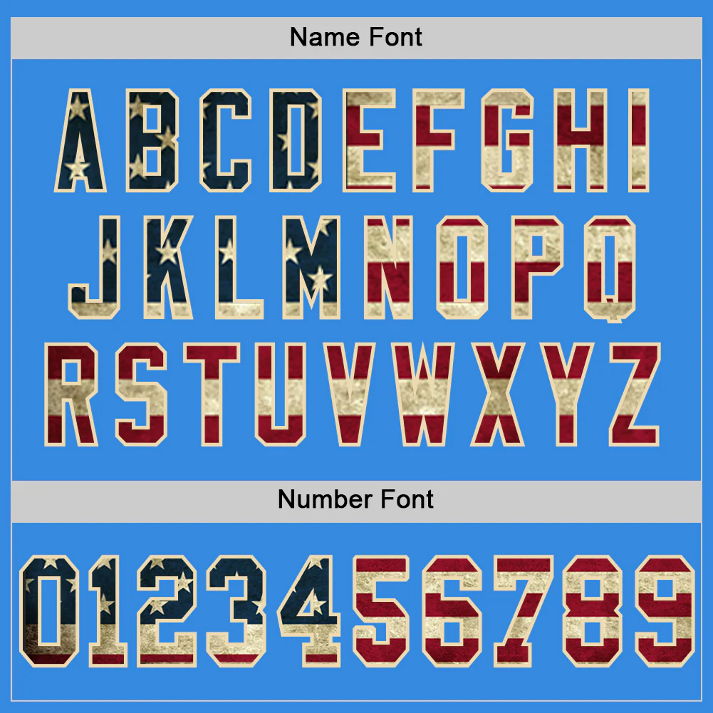 Custom Powder Blue Vintage USA Flag Cream-Red Mesh Authentic Throwback Football Jersey