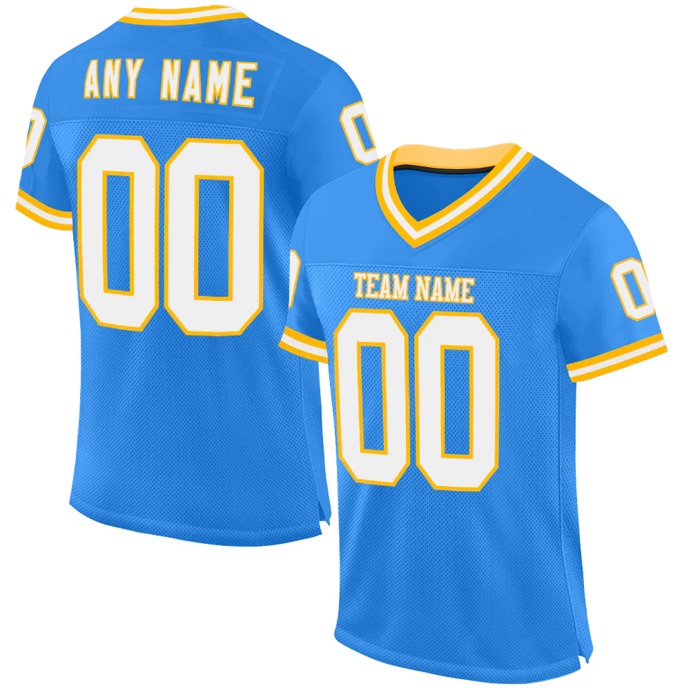 Custom Powder Blue White-Gold Mesh Authentic Throwback Football Jersey