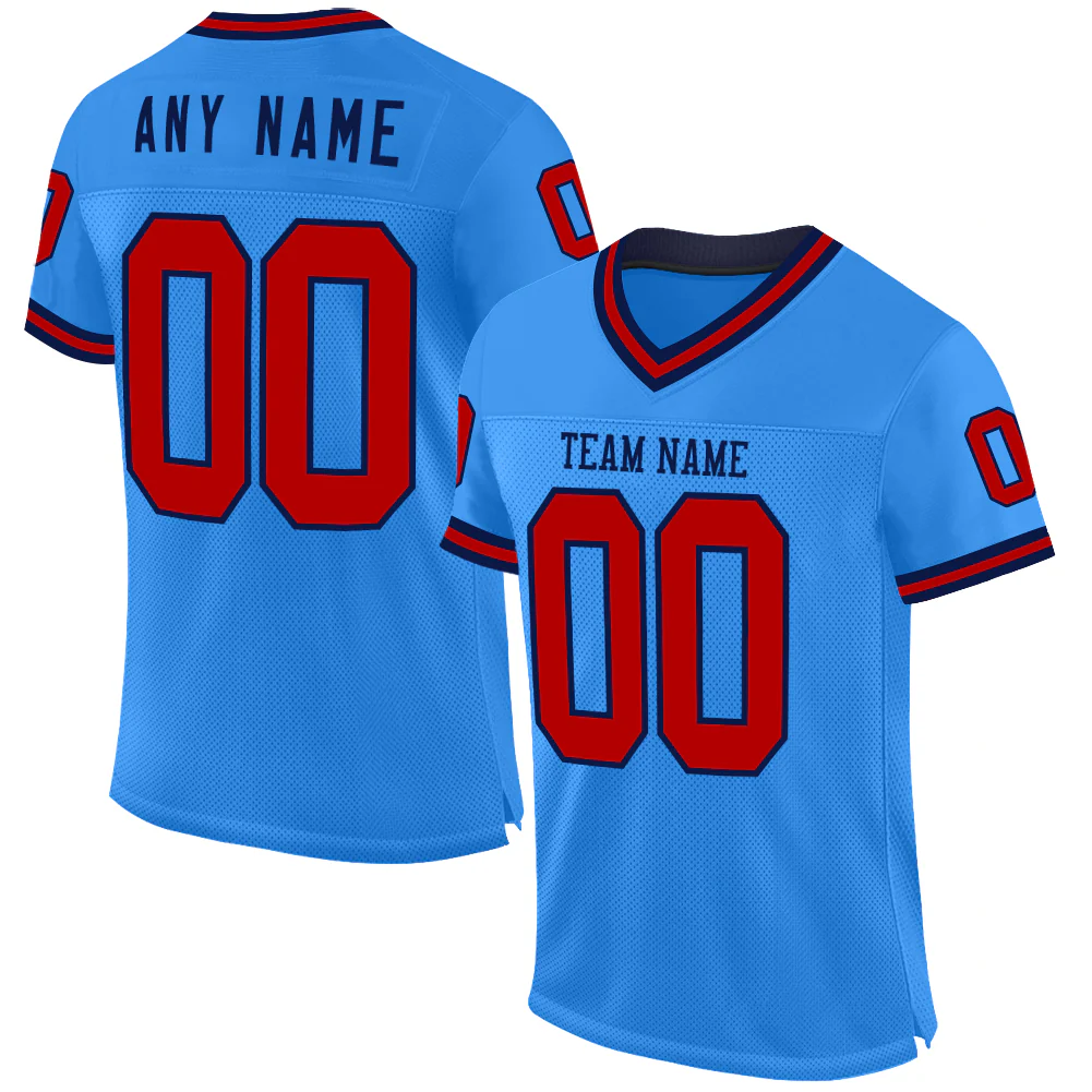 Custom Powder Blue Red-Navy Mesh Authentic Throwback Football Jersey