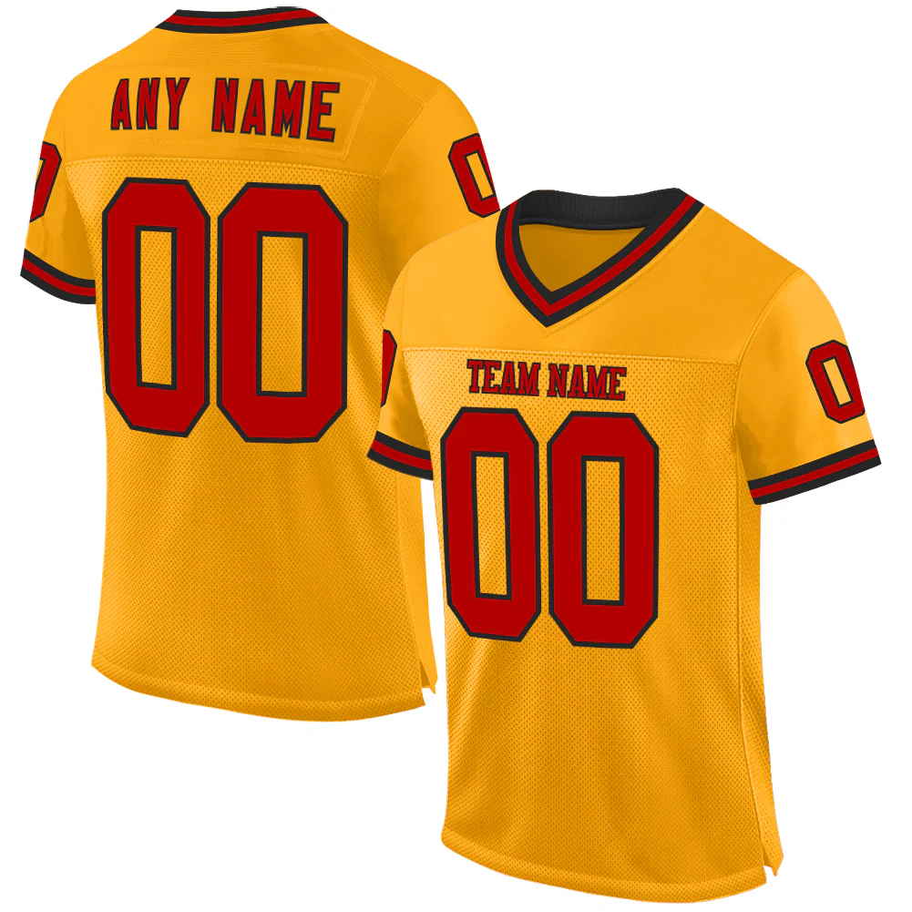Custom Gold Red-Black Mesh Authentic Throwback Football Jersey