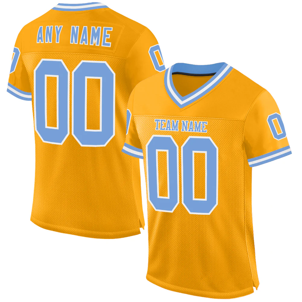 Custom Gold Light Blue-White Mesh Authentic Throwback Football Jersey